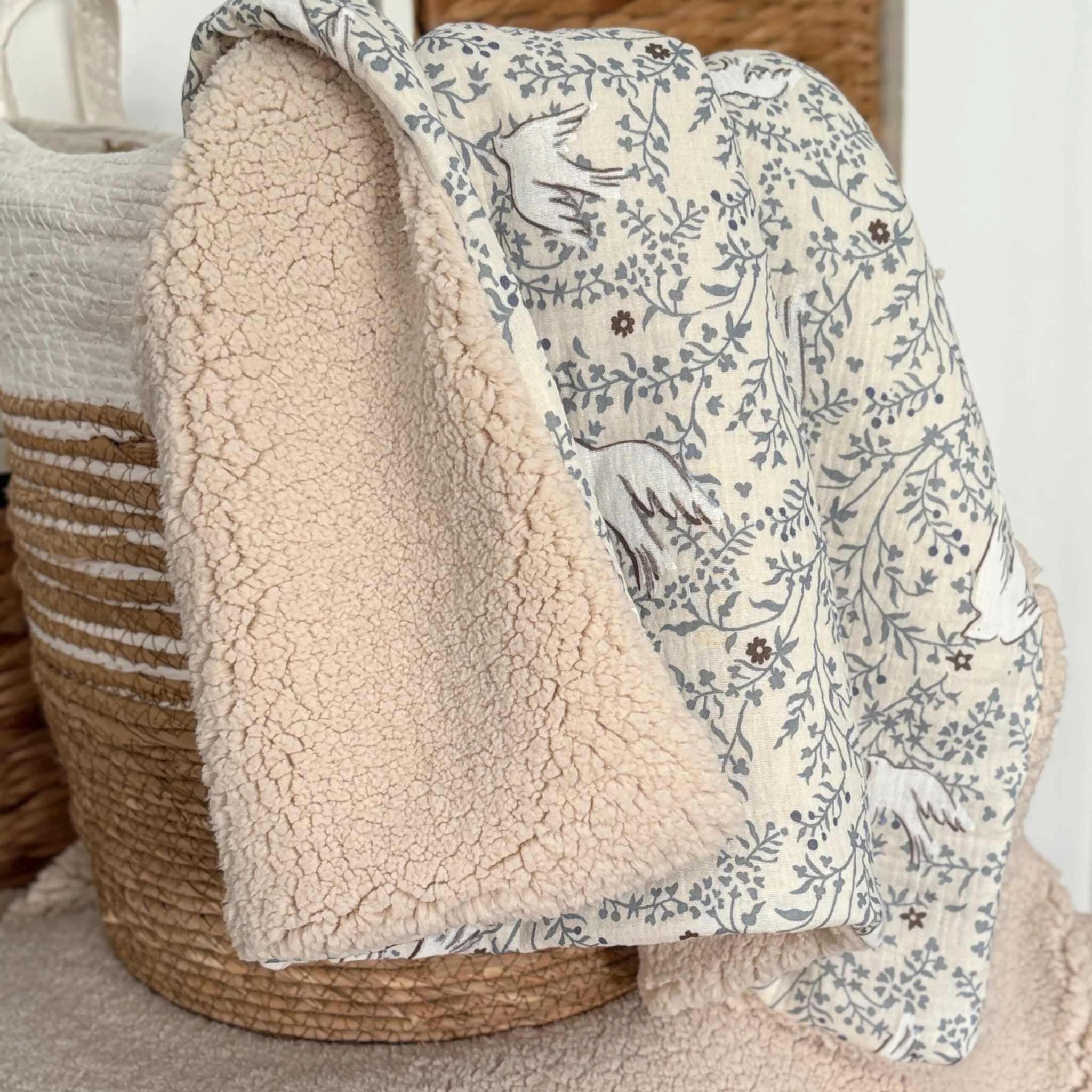 SaleChoix des options Ce produit a plusieurs variations. Les options peuvent être choisies sur la page du produitCouverture en gaze de coton écrue et bleu moumoute sherpa