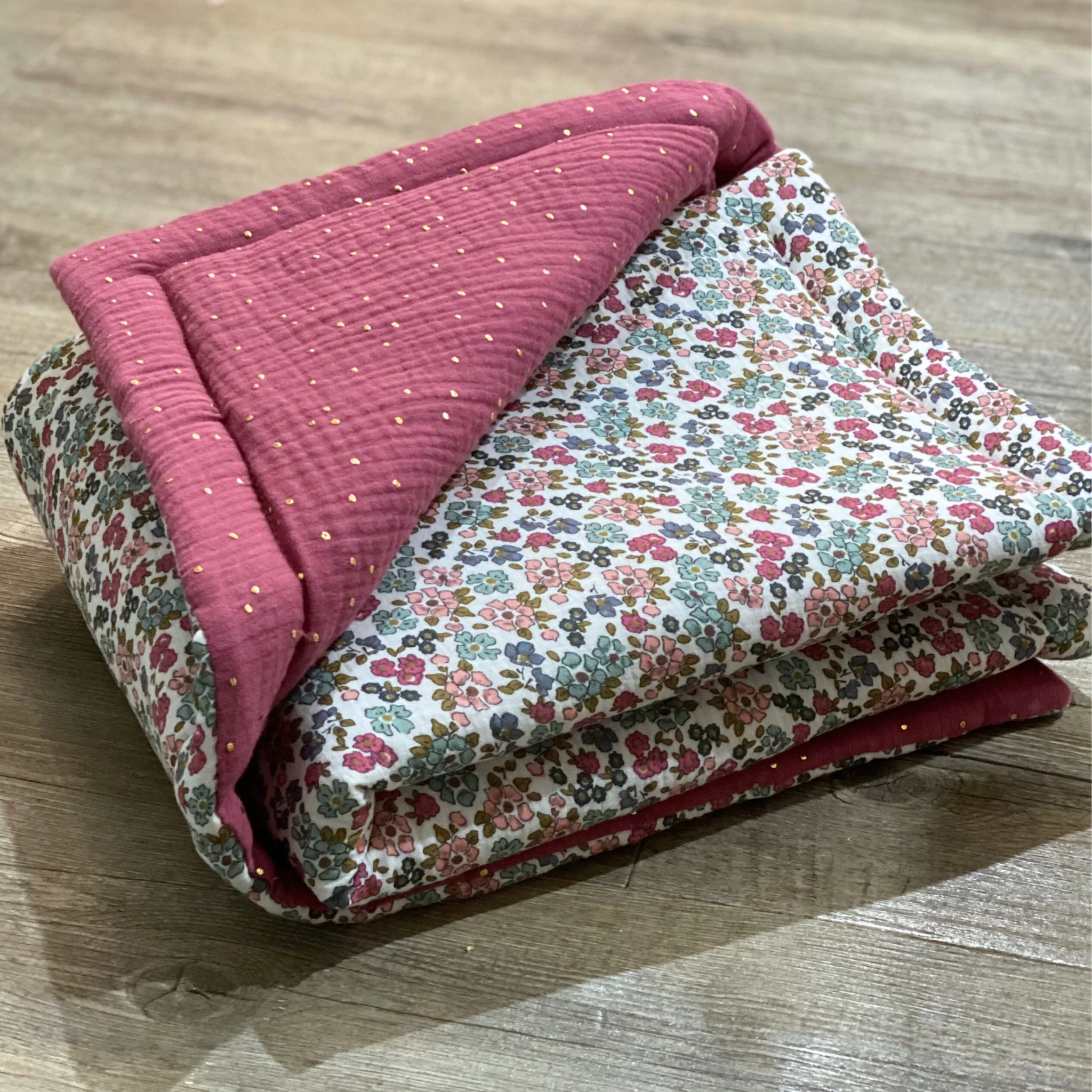 Couverture bébé framboise et vert à fleurs