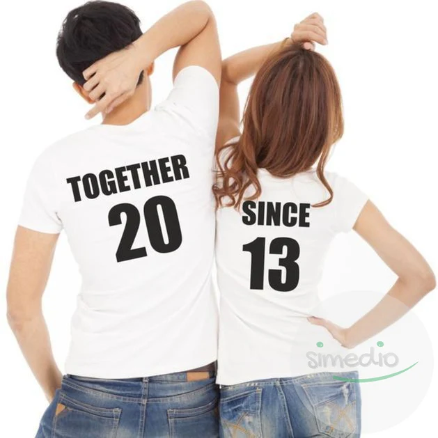 Lot de 2 T-shirts pour amoureux à personnaliser : TOGETHER SINCE…