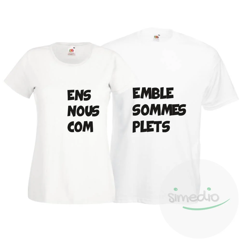 Lot de 2 T-shirts pour amoureux : ENSEMBLE NOUS SOMMES COMPLETS