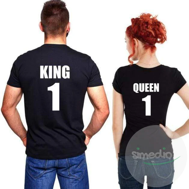 Lot de 2 T-shirts pour amoureux : KING & QUEEN