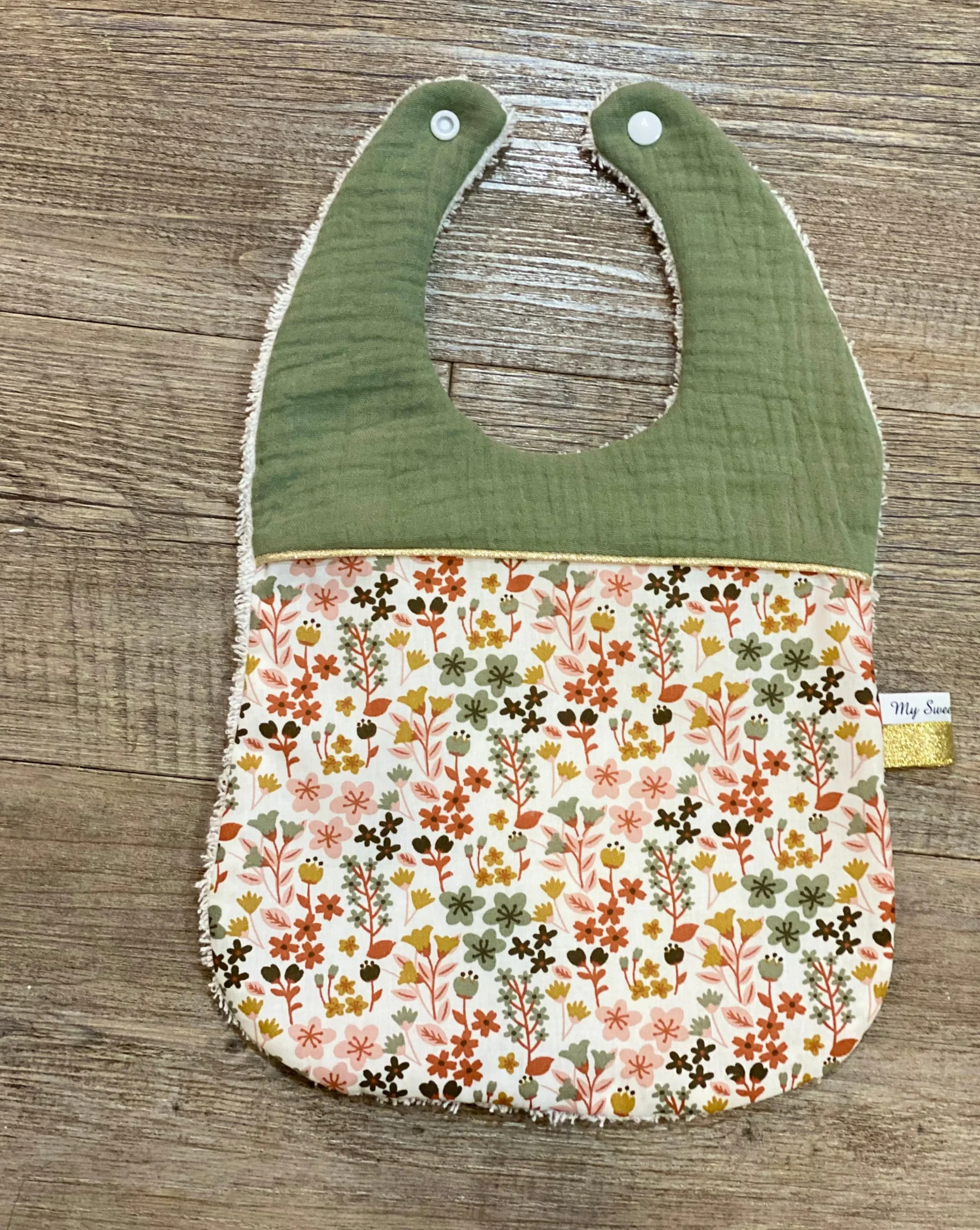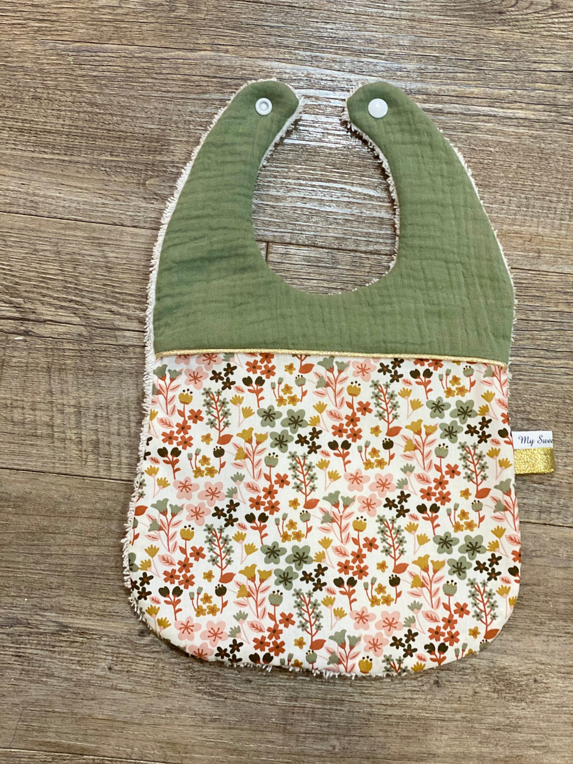 Bavoir à fleurs terracotta camel vert et rose