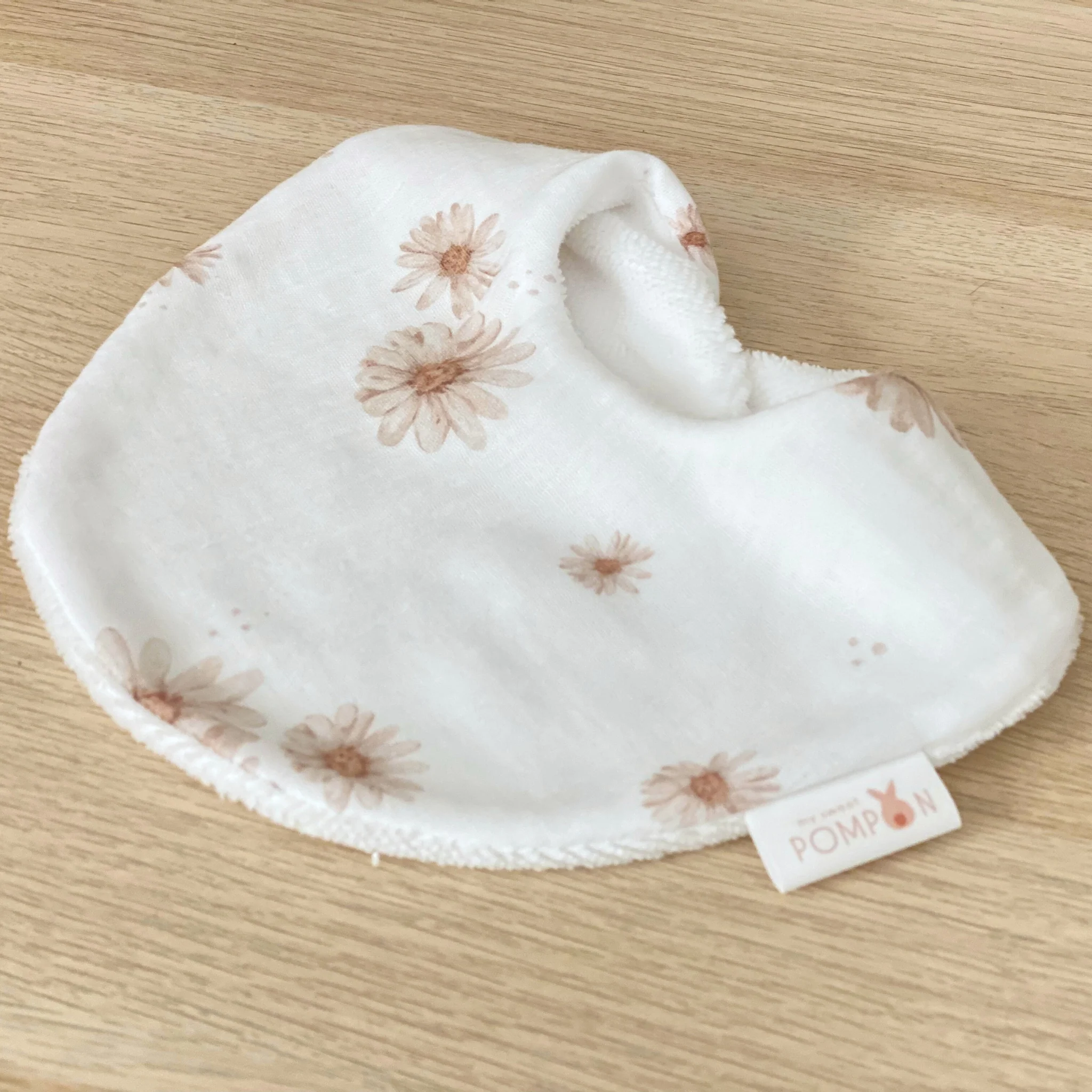 Bavoirs ronds en gaze de coton motif marguerite et vichy lin et blanc