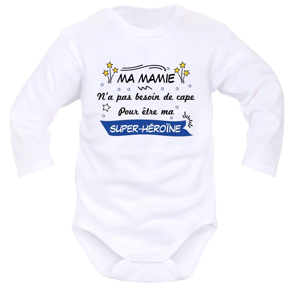 Pour la fête des grands-mères ou l’arrivée de bébé : Pensez aux Bodies Mamy imprimés. C’est le cadeau tendance qui fera la différence. Jouez la carte sentimentale pour être sûr de lui faire plaisir. Plus de Bodies à inscriptions originales personnalisées pour Mamy.