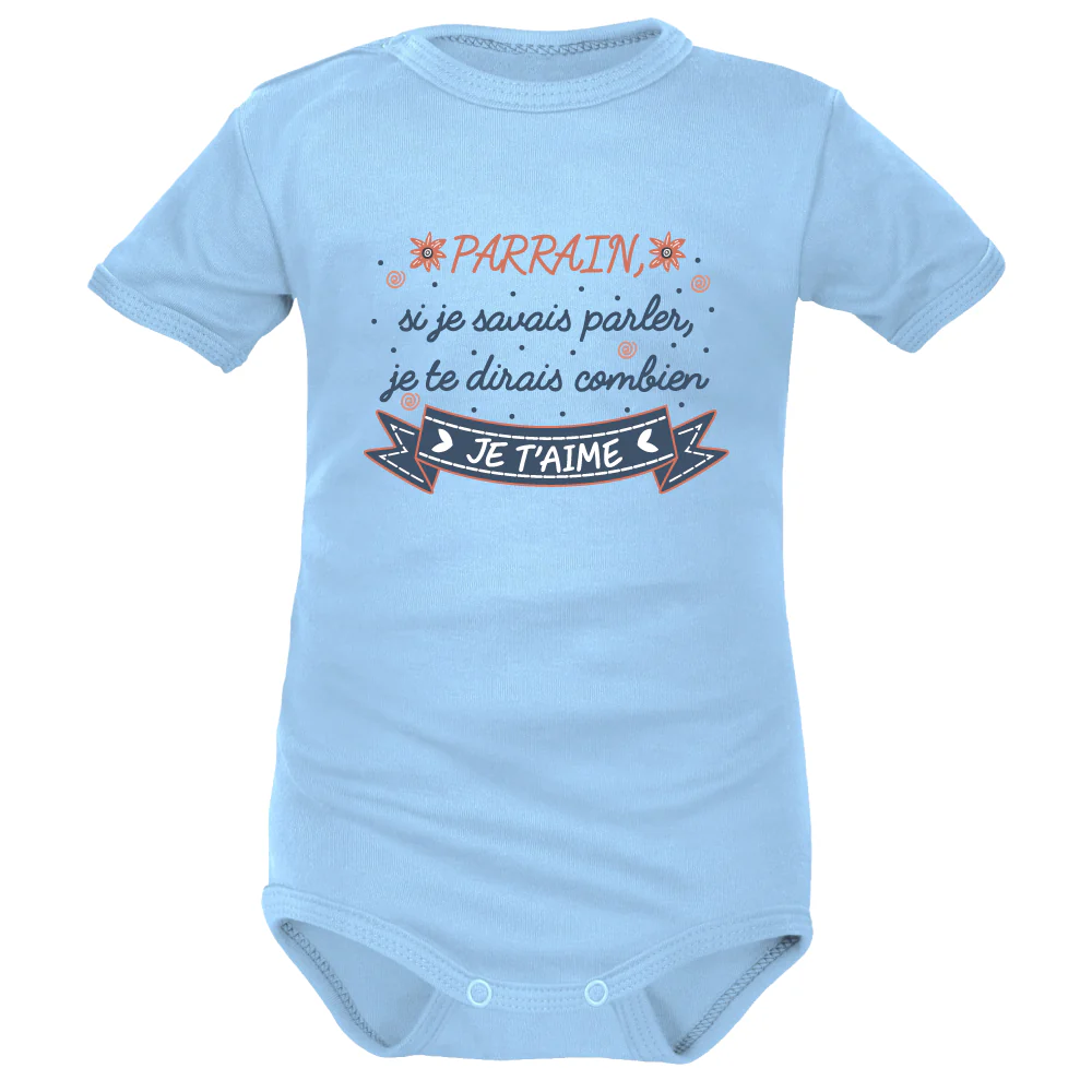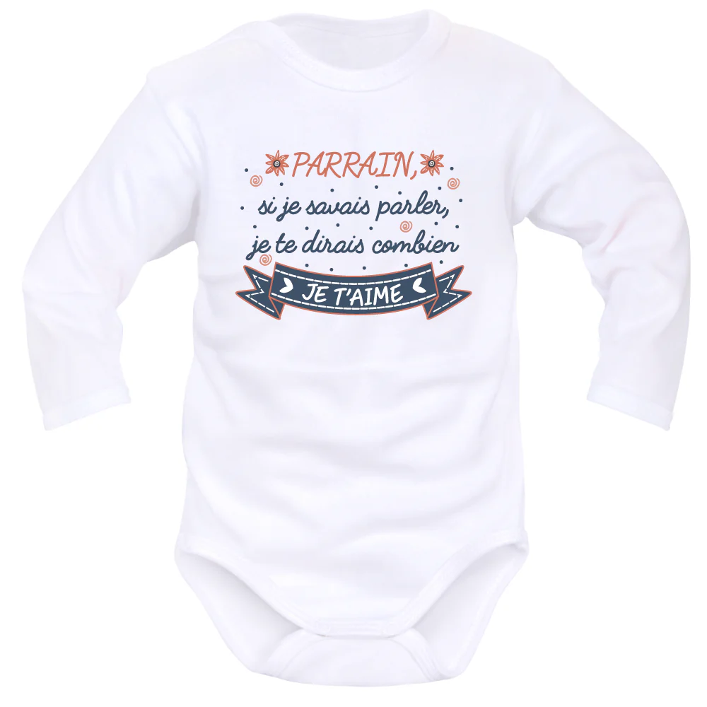 Vous désirez demander à un proche de devenir le Parrain du petit ? Vous voulez faire plaisir à Parrain ou bébé à l’occasion d’une fête, naissance ou anniversaire ? Vous êtes le Parrain et vous souhaitez offrir un cadeau à votre filleul.e ou à ses parents ? Il y a tellement de façon d’offrir un Body à message Parrain. Choisissez le modèle de Body Parrain à l’inscription qui vous convient.
