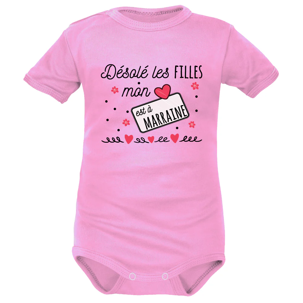 Excellent choix ! Bébé est fou de sa Marraine. Serait-ce son parfum ou ses rides naissantes au coin des yeux ? Votre petit garçon le dit sur son Body bébé à inscription : « Désolé les filles, mon cœur est à Marraine ». Un amour de message, drôle et fondant, à partager avec toutes les futures Marraines de petits garçons.
