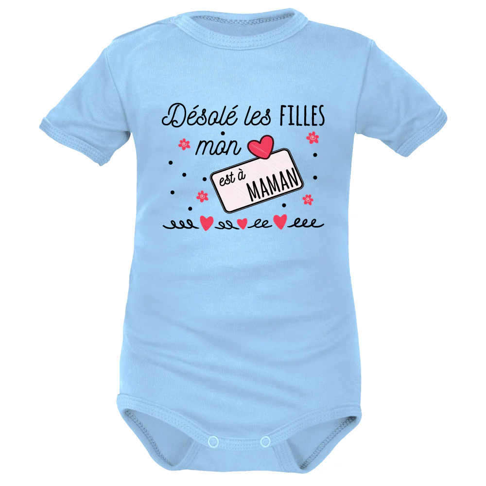 Vous attendez un petit garçon et vous voulez partager cette nouvelle avec le monde. Surprenez vos amis et la famille lors d’un baby shower ou fête de l’annonce du sexe de bébé avec ce Body imprimé « Désolé les filles, mon cœur est à Maman ». Proche ou amis des jeunes parents : Offrez ce magnifique Body rouge signé Maman lors de votre visite à la maternité ou à domicile. Profitez des fêtes pour gâter bébé : anniversaire, Noël, Pâques et fin d’année. Choisissez votre Body à inscription Maman préféré dans notre collection originale.
