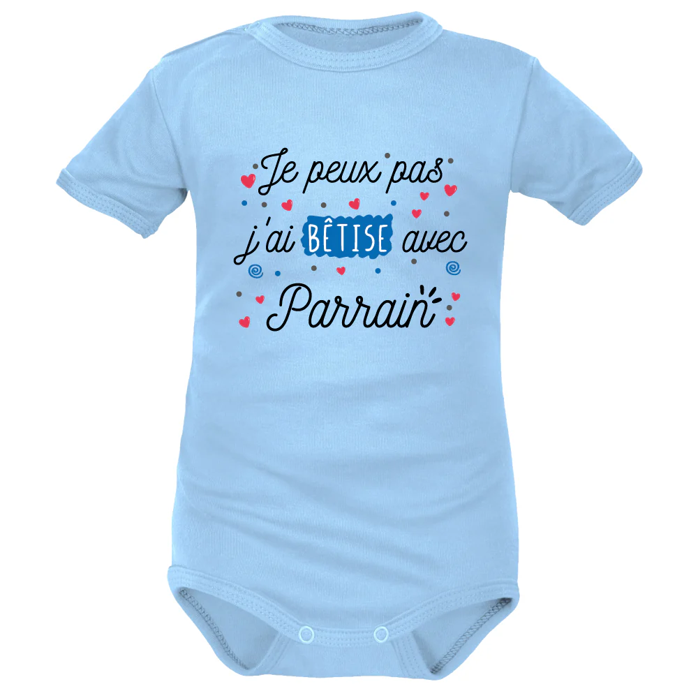 Vous cherchez une idée de cadeau humoristique et original pour son Parrain ? Ne manquez pas ce Body nourrisson au slogan tendance et tordant. « Je peux pas j’ai… » se décline à l’infini et s’invite maintenant dans le prêt-à-porter nouveau-né pour faire fondre le super Parrain. Vous pouvez commander toutes sortes de Bodies à message drôle ou symbolique pour Parrain.