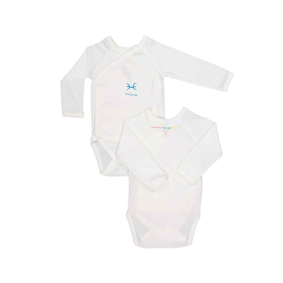 Bienvenue dans l’univers poétique de Charlie dans les étoiles. Ce body bébé manches longues « signe astrologique Poissons » est bien plus qu’un simple vêtement : c’est une pièce unique, pensée pour accompagner les premiers mois de votre bébé avec tendresse et personnalité.