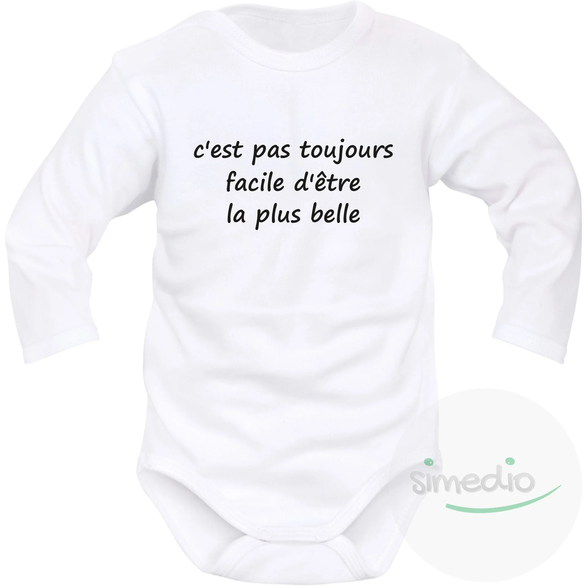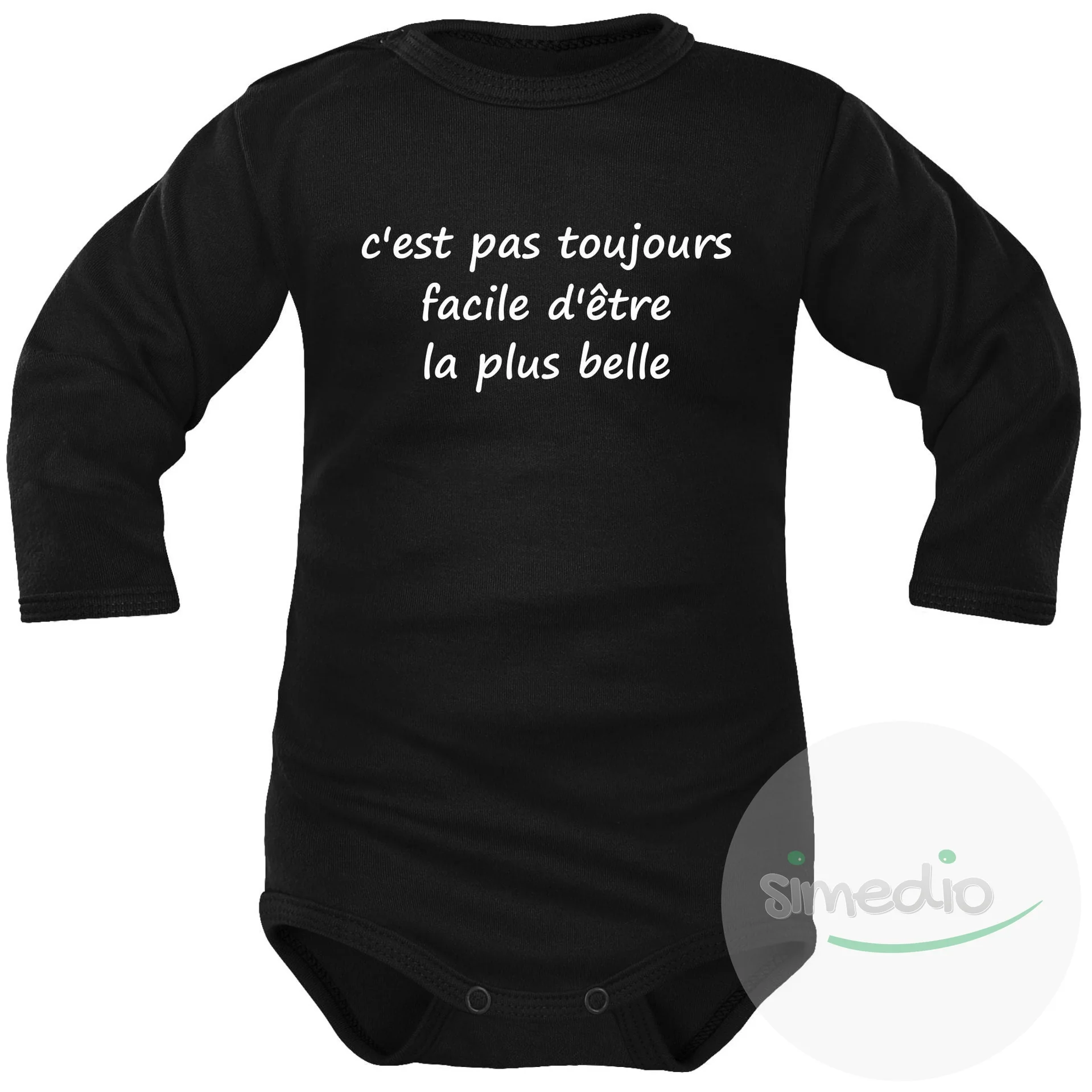 Body bébé avec message rigolo : c’est pas toujours facile d’être la plus belle