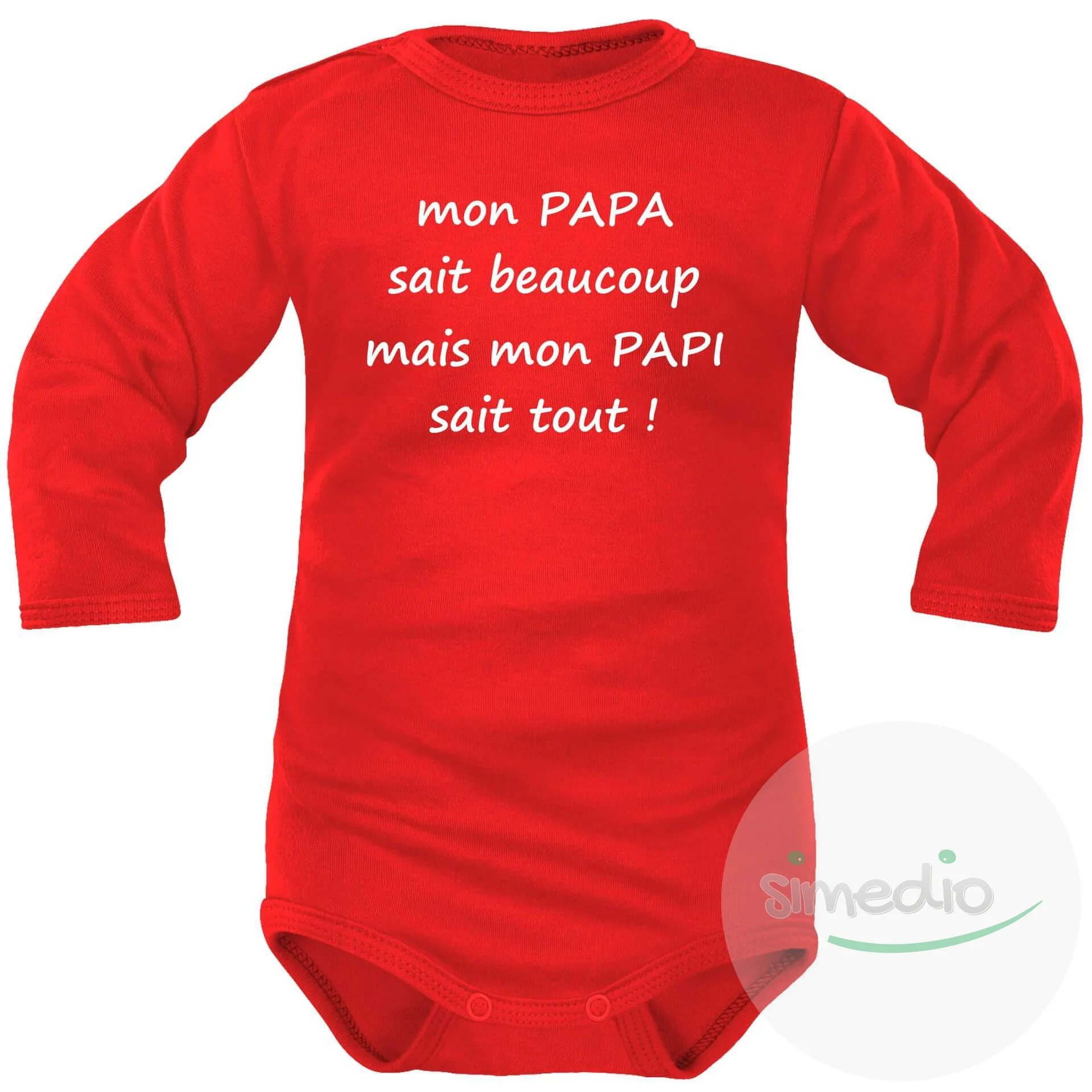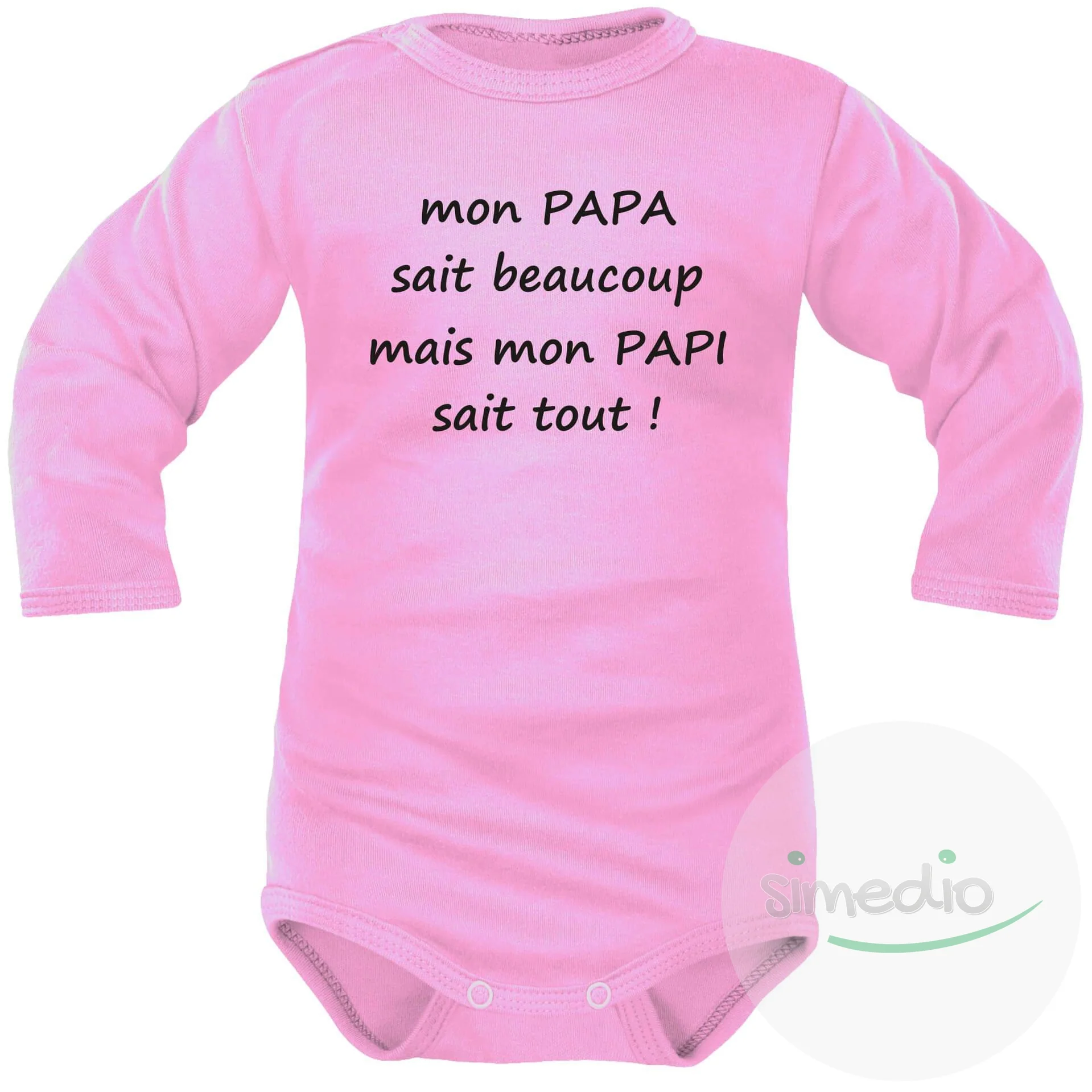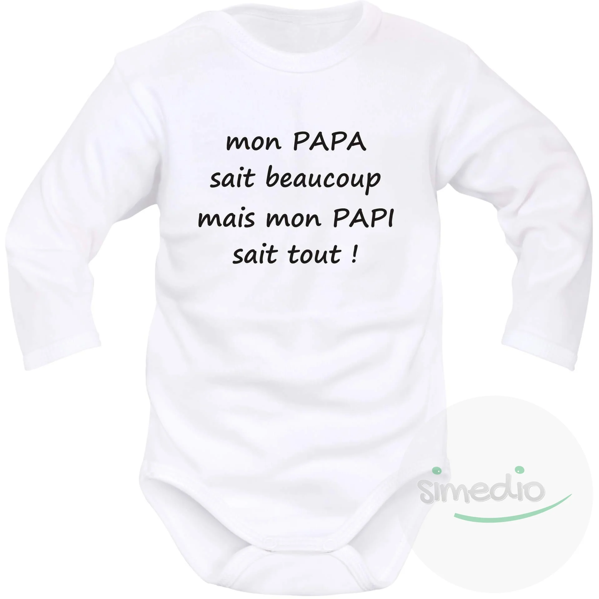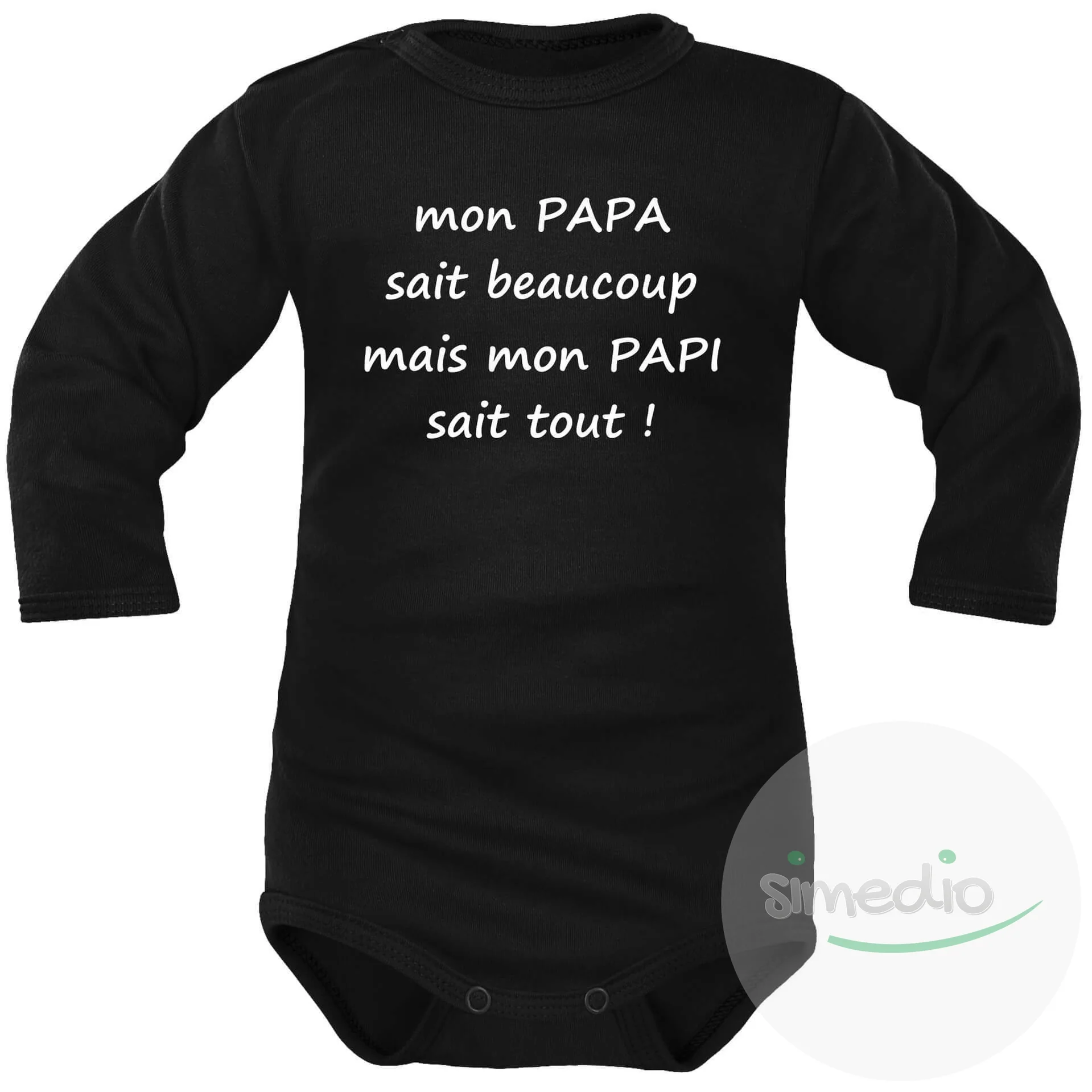 Body bébé humour pour les petits-enfants : mon PAPA sait beaucoup mais mon PAPI sait tout !
