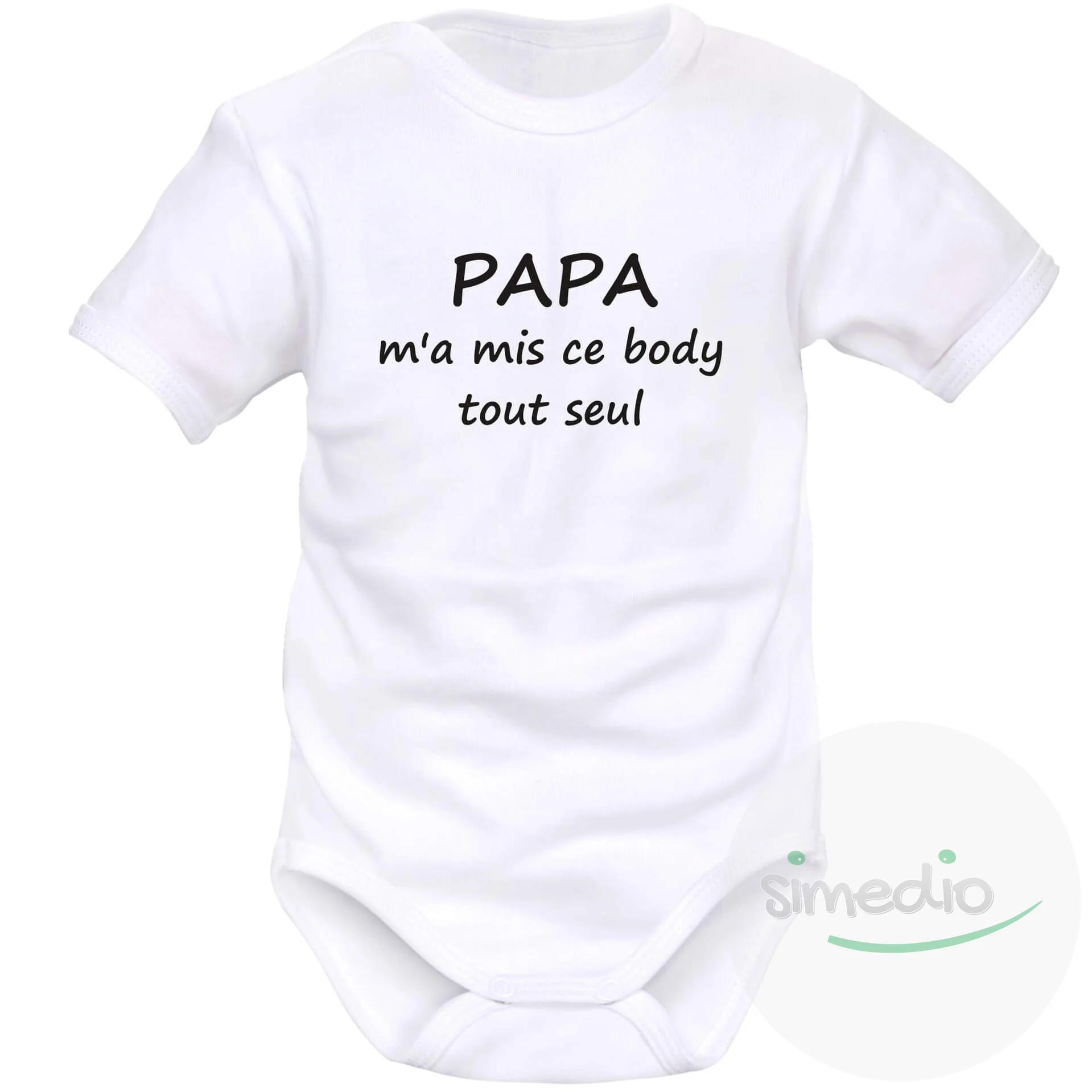 Grande inscription devant : PAPA M’A MIS CE BODY TOUT SEUL