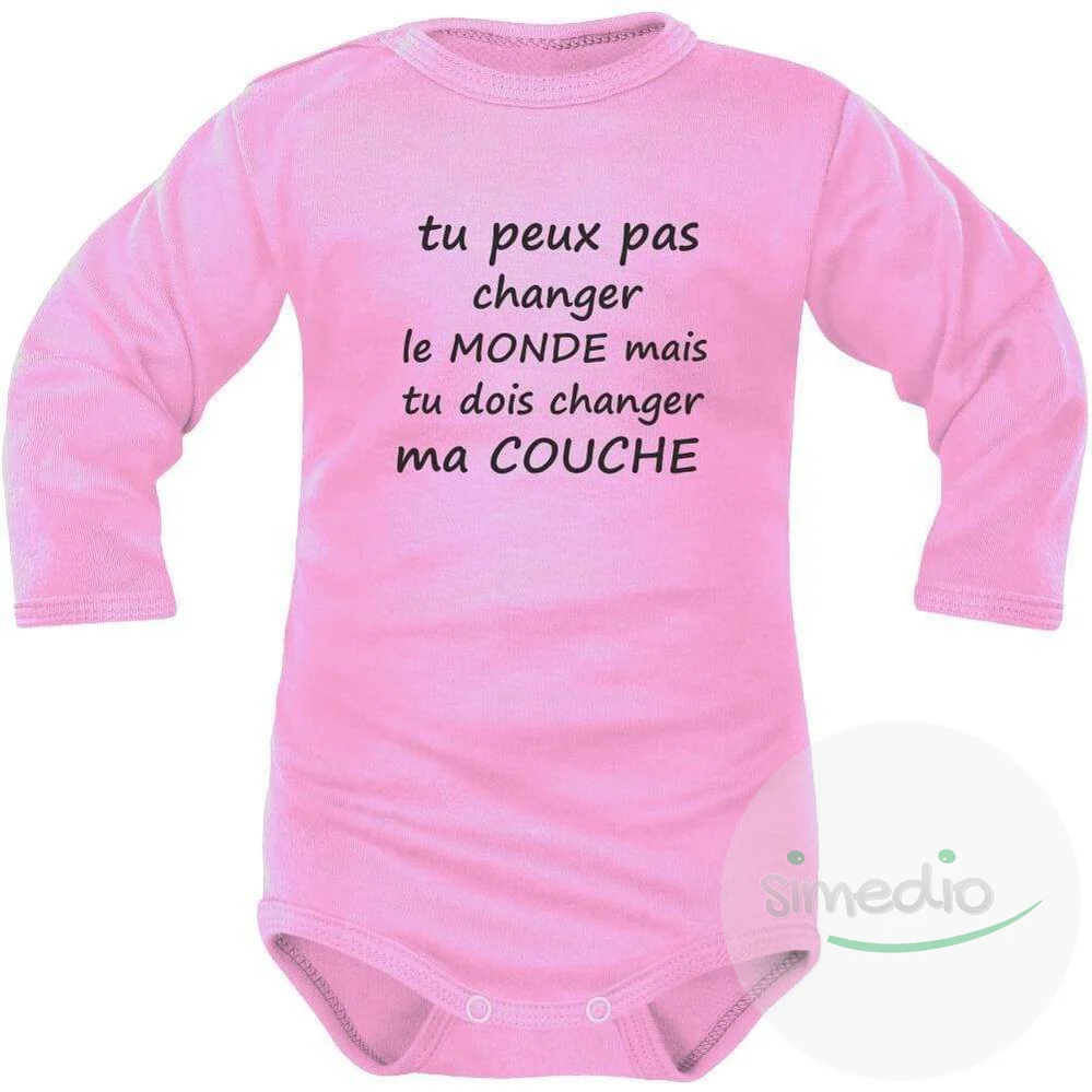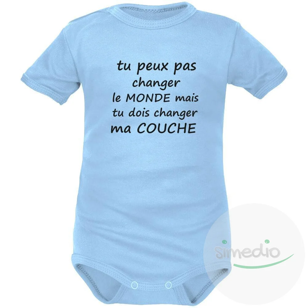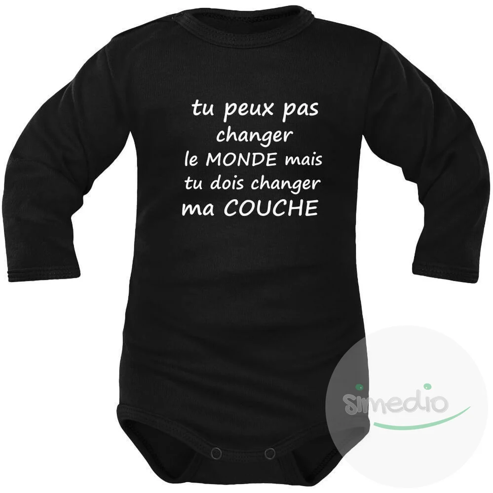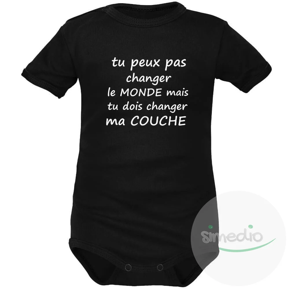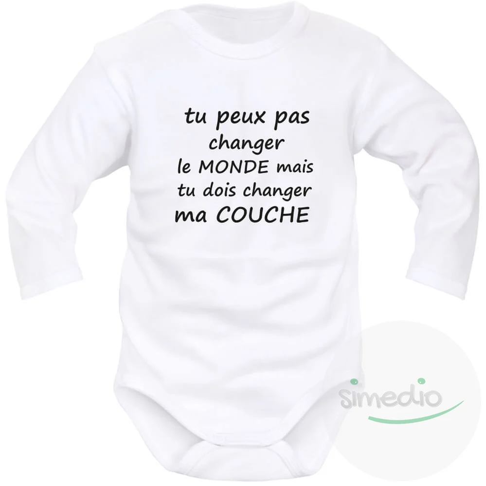 Désirez-vous attirer l’attention sur votre enfant ? Faites-lui porter ce Body personnifié « Tu peux pas changer le MONDE » et vous réussirez à coup sûr !