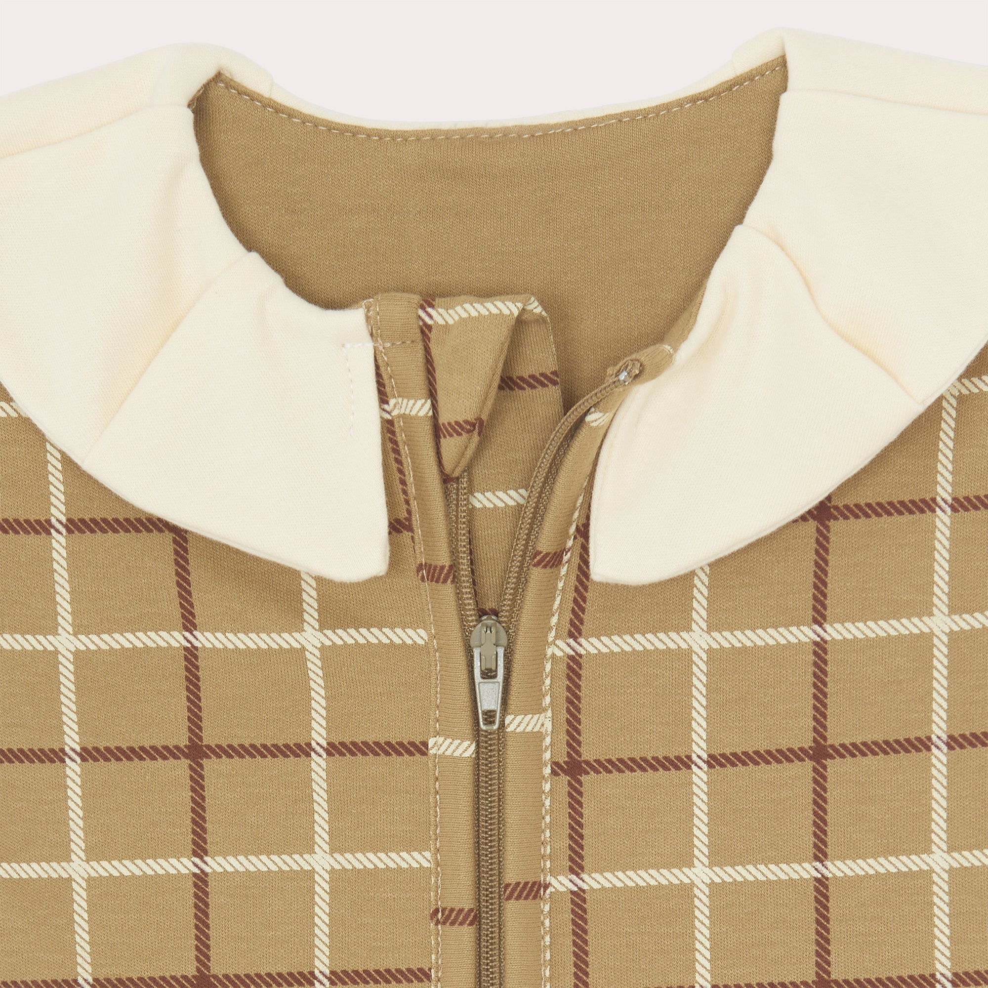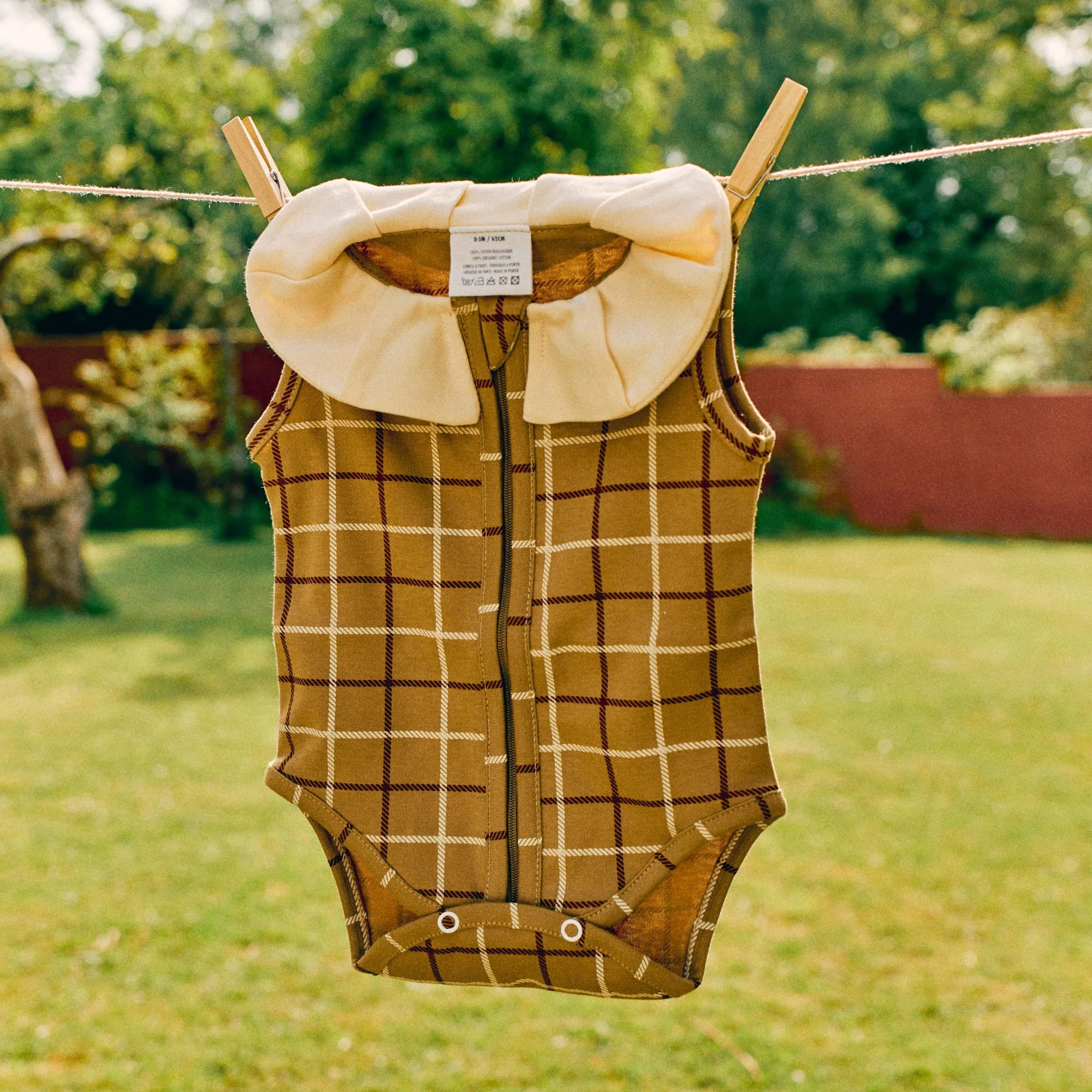 Notre body bébé zippé Comète Paris Mosaïque a un joli motif à carreaux, un petit col à Vague et une couleur vert fenouil. Confectionné en 100% coton biologique, la fermeture éclair du body bébé est protégée à l’intérieur par une doublure pour éviter tout contact avec la peau de bébé. Facile à enfiler, il pourra s’accorder avec vos tenues préférées !