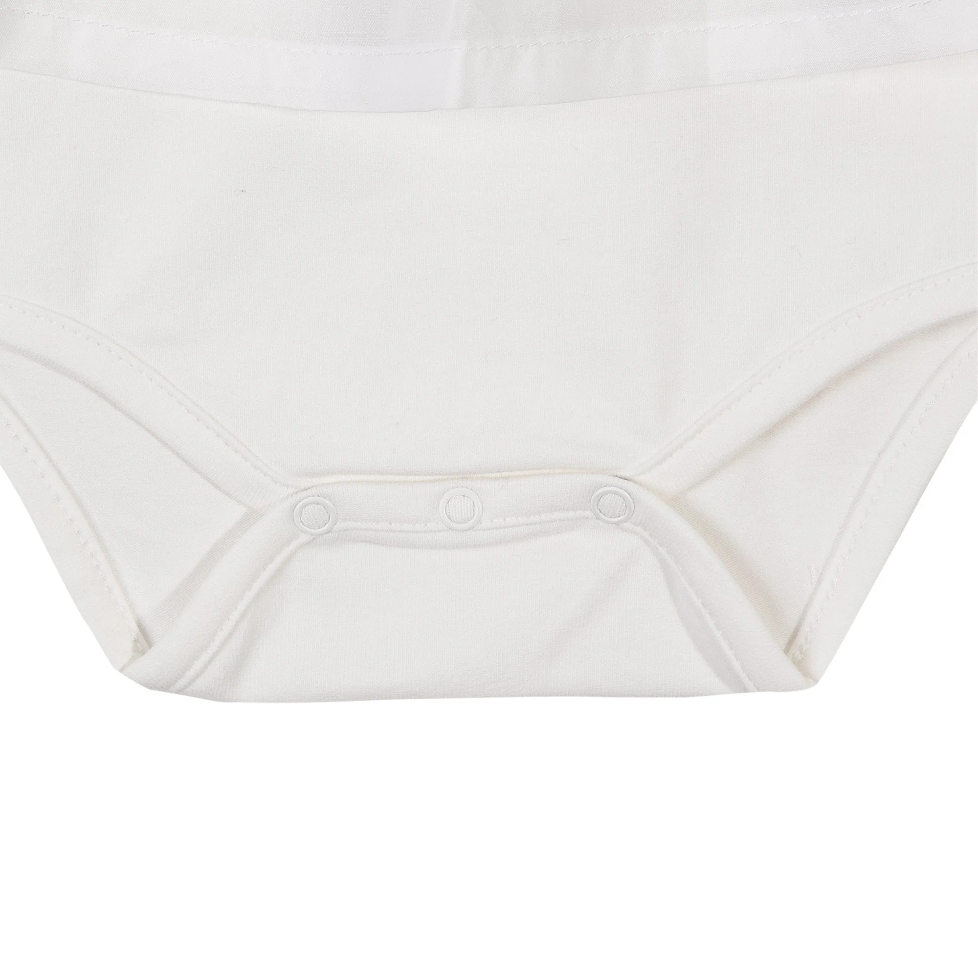 Nous vous proposons un body avec une blouse intégrée en voile de coton pour habiller votre bébé de la façon la plus simple et élégante possible.