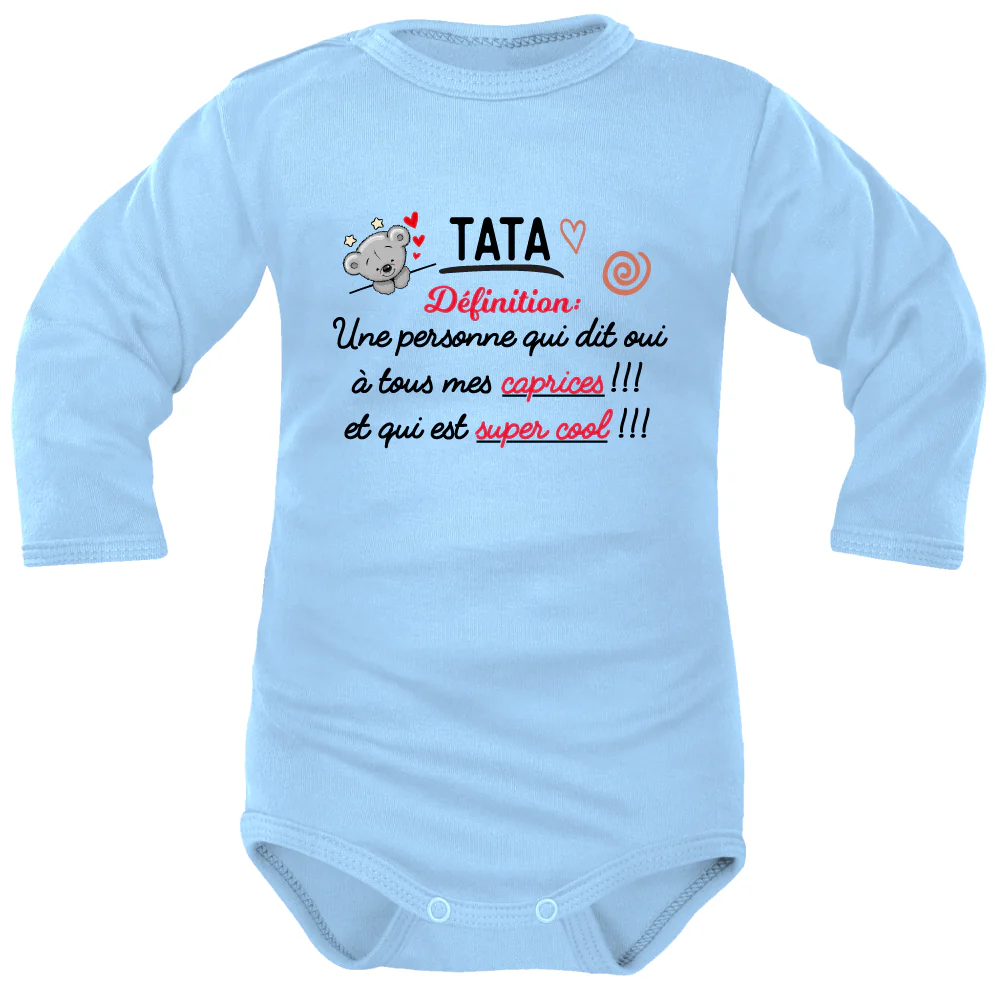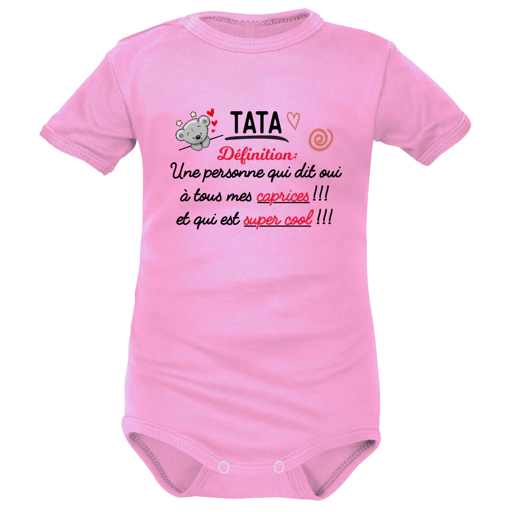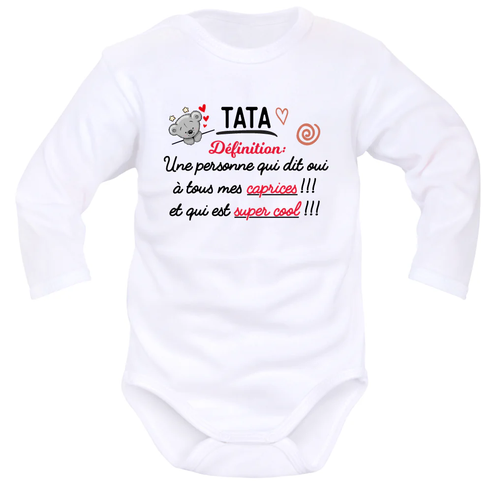 Vous cherchez un Body mixte qui parle de Tatie et bébé. Vous allez être servi avec ce Body qui définit Tatie. Tatie, c’est la tante super cool qui fait tous les caprices de ses neveux. Ils l’adorent, c’est sûr ! Mais elle, va-t-elle tenir sur la durée ?