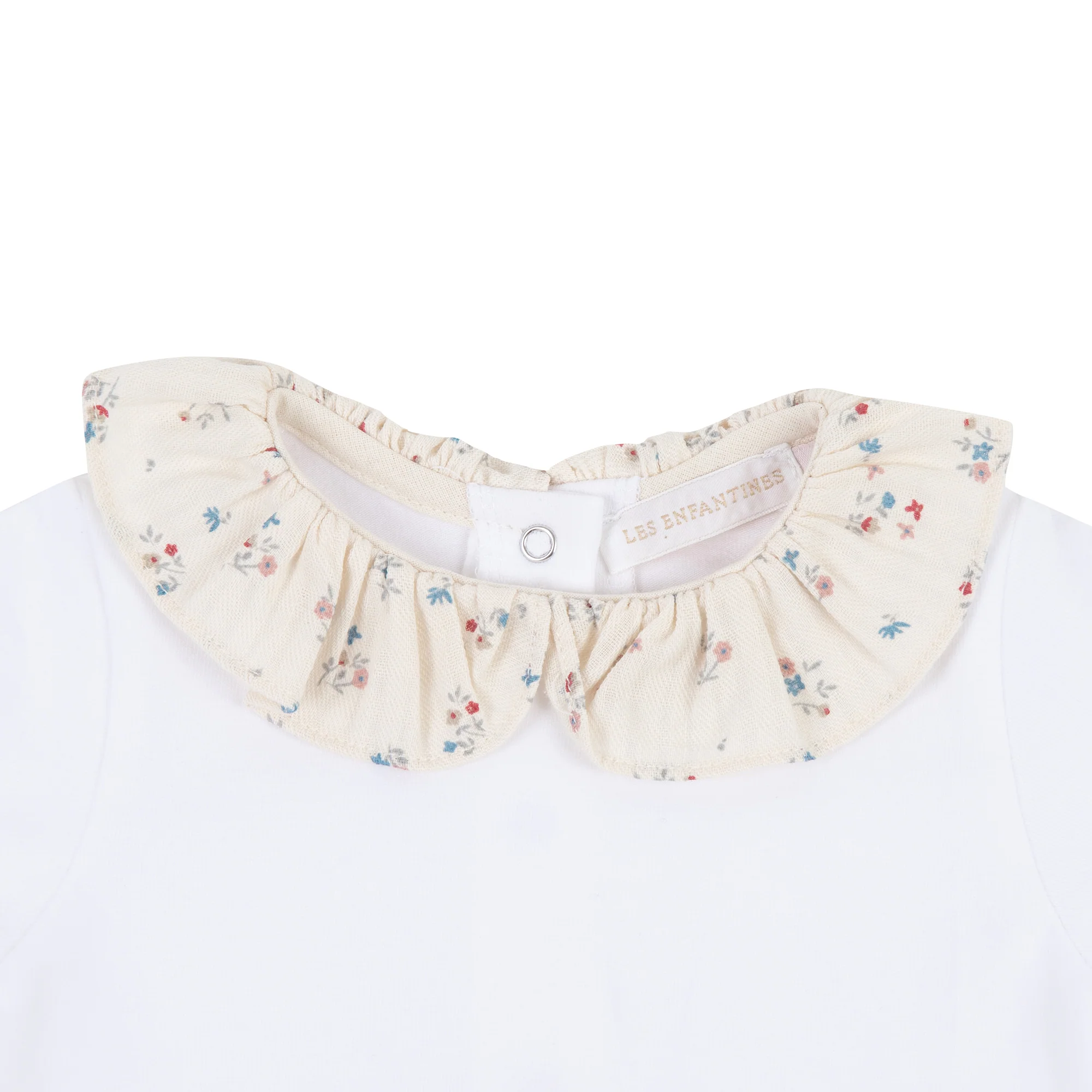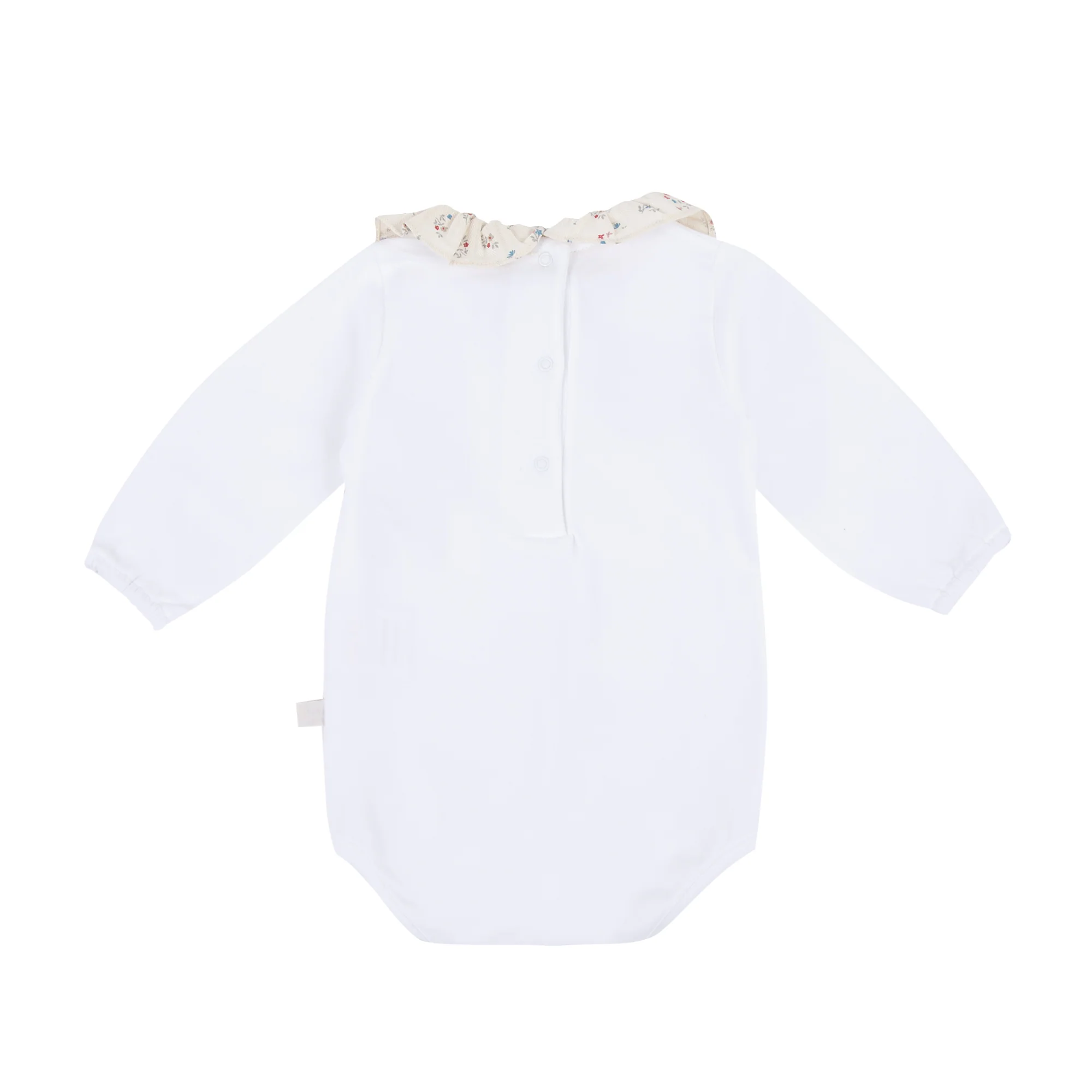 Nous vous proposons un joli body CHOUETTE en jersey blanc cassé avec des manches longues et une encolure de petites fleurs.