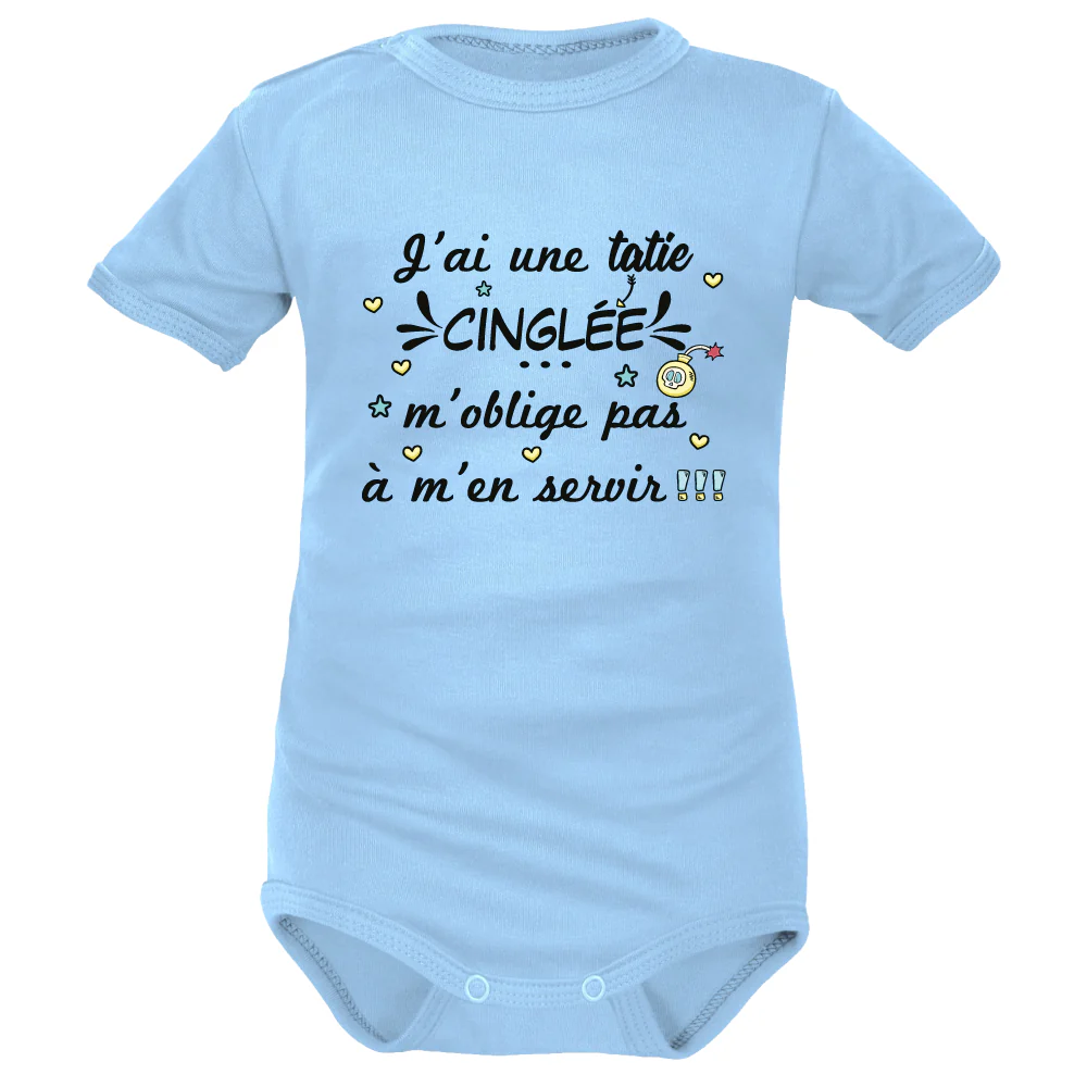 Les parents aiment annoncer la grossesse à Tatie de façon originale : Le body Tatie imprimé est une excellente solution pour échapper à la monotonie. Les proches de bébé peuvent également offrir ce Body humour à Tatie ou à bébé pour célébrer une naissance, rendre visite à bébé ou à Tatie et se réjouir lors des fêtes de fin d’année. On aime aussi ce genre de Body imprimé spécial pour faire un cadeau à bébé ou à Tatie le jour de leur anniversaire. Psst… Nous vous avons préparé d’autres Bodies drôles signés Tatie.