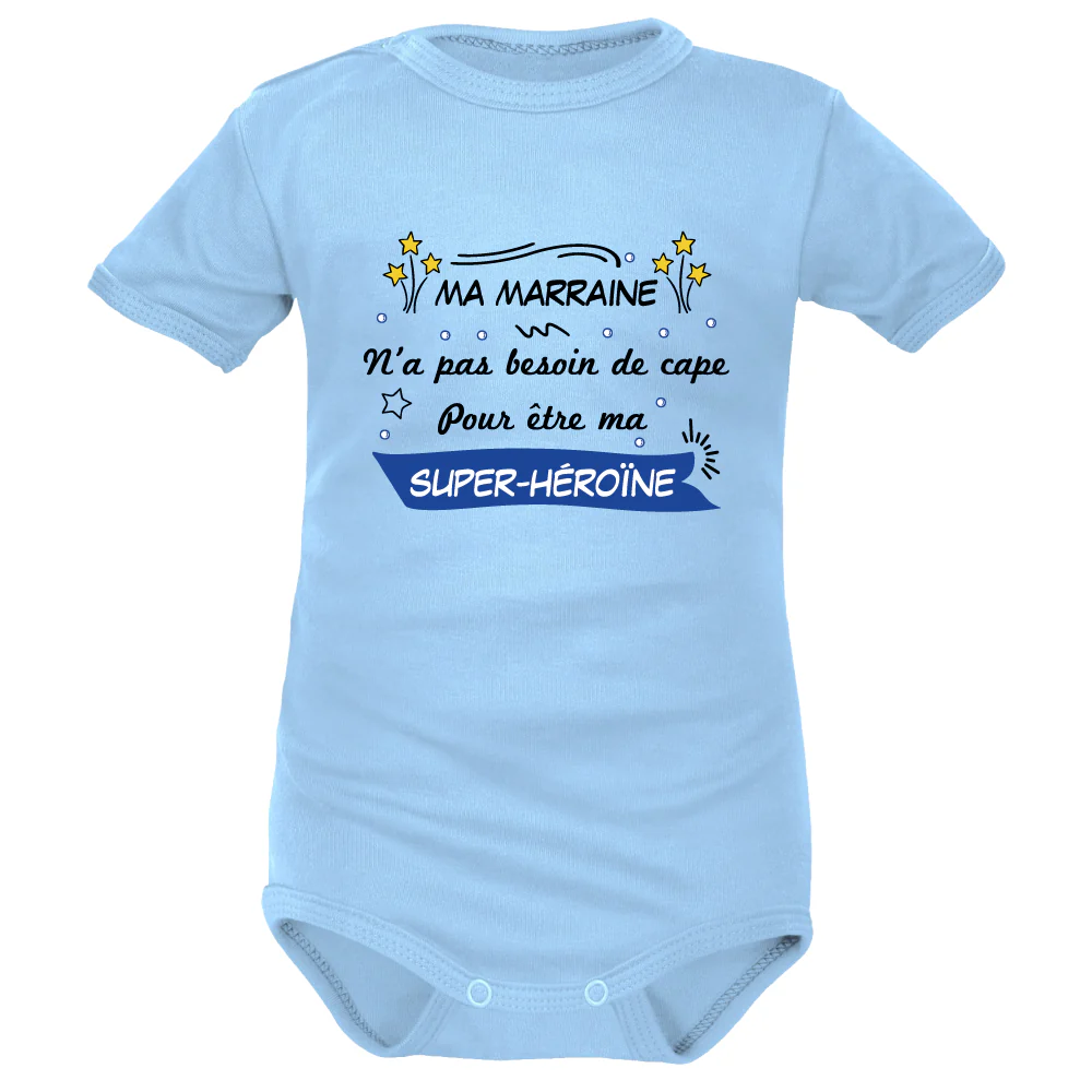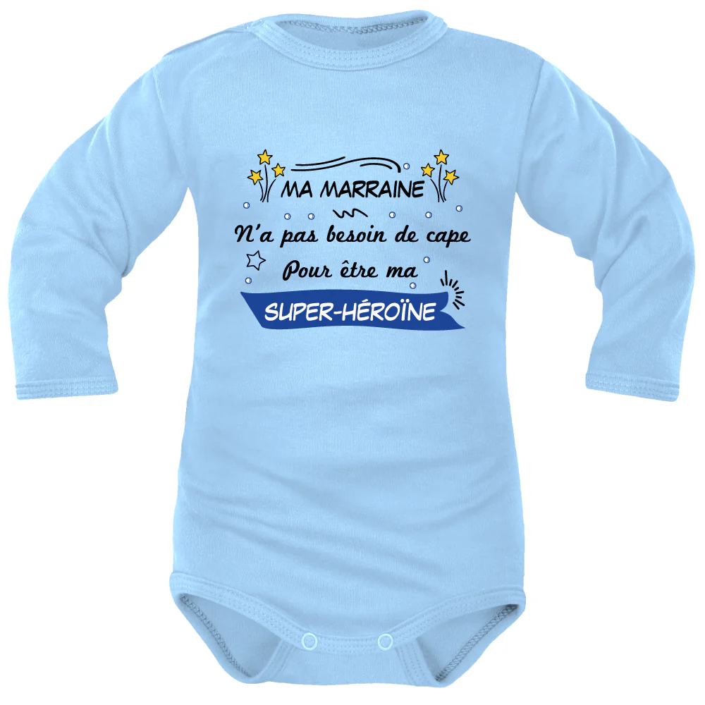 Vêtement nourrisson imprimé d’un message superhéros pour Marraine