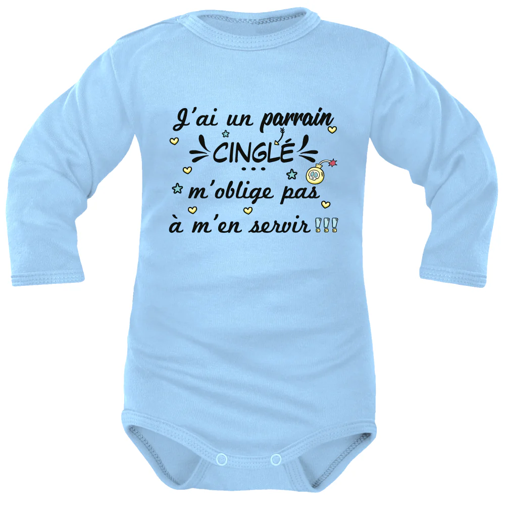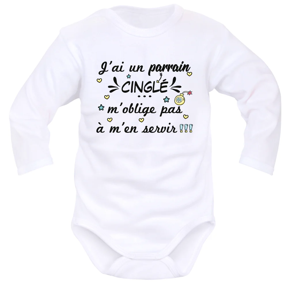 Un Body bébé si comique sera parfait pour demander à Parrain de le devenir. Alors, lancez-vous ! Néanmoins, vous pouvez offrir ce Body hilarant à bébé ou Parrain pour une naissance, fête de fin d’année, visite, repas de famille et anniversaire de Parrain ou son/sa filleul.e. Parrain craque en voyant cette page ? Qu’il se fasse plaisir. On n’est jamais mieux servi que par soi-même. Nous vous proposons différents bodies drôles pour Parrain. Faites votre choix.