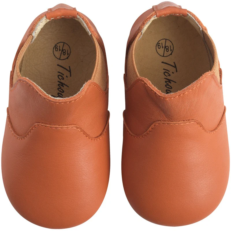 Chaussures bébé cuir souple adaptés pour l’intérieur et en extérieur par temps sec. Semelle extérieure en cuir suédé et caoutchouc.
