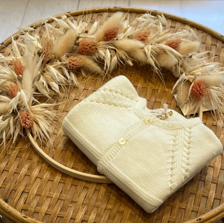 Ce cardigan est en 100% laine mérinos, blanc éclatant et réconfortant avec de jolis boutons nacré blanc. Une qualité irréprochable depuis des années.