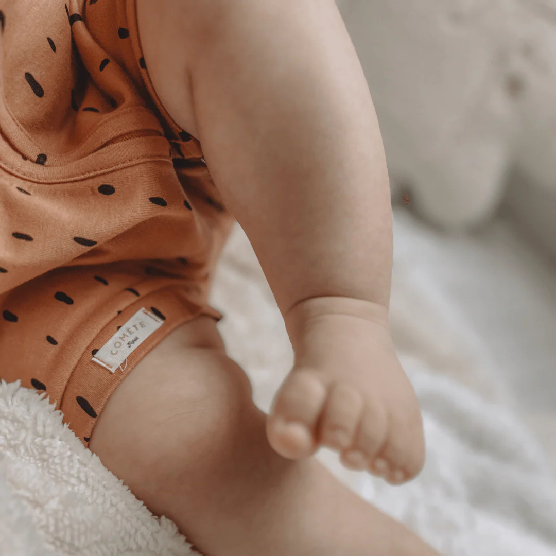 Confortable et léger le combishort zippé Comète Paris Savannah est une tenue pratique pour les enfants comme pour les parents, il offre une grande liberté de mouvement et permet un change rapide. Avec son motif tacheté et sa couleur noix de pécan, il est à croquer. Le combishort est pensé pour profiter de toutes les situations : de la ville, de la plage, du jour, de la nuit. Avec son style pile dans les tendances, il est à glisser dès à présent dans le vestiaire de votre enfant.