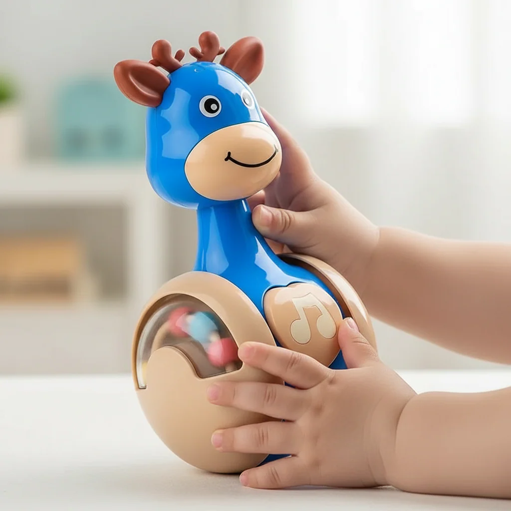 Fabriqué en plastique ABS robuste et sans BPA, ce culbuto girafe respecte les normes de sécurité européennes CE. Les bords sont arrondis pour éviter tout risque de blessure. Les billes colorées sont solidement enfermées dans la roue transparente, impossible pour bébé de les extraire. Un jouet sain et sécurisé que vous pouvez offrir en toute confiance.