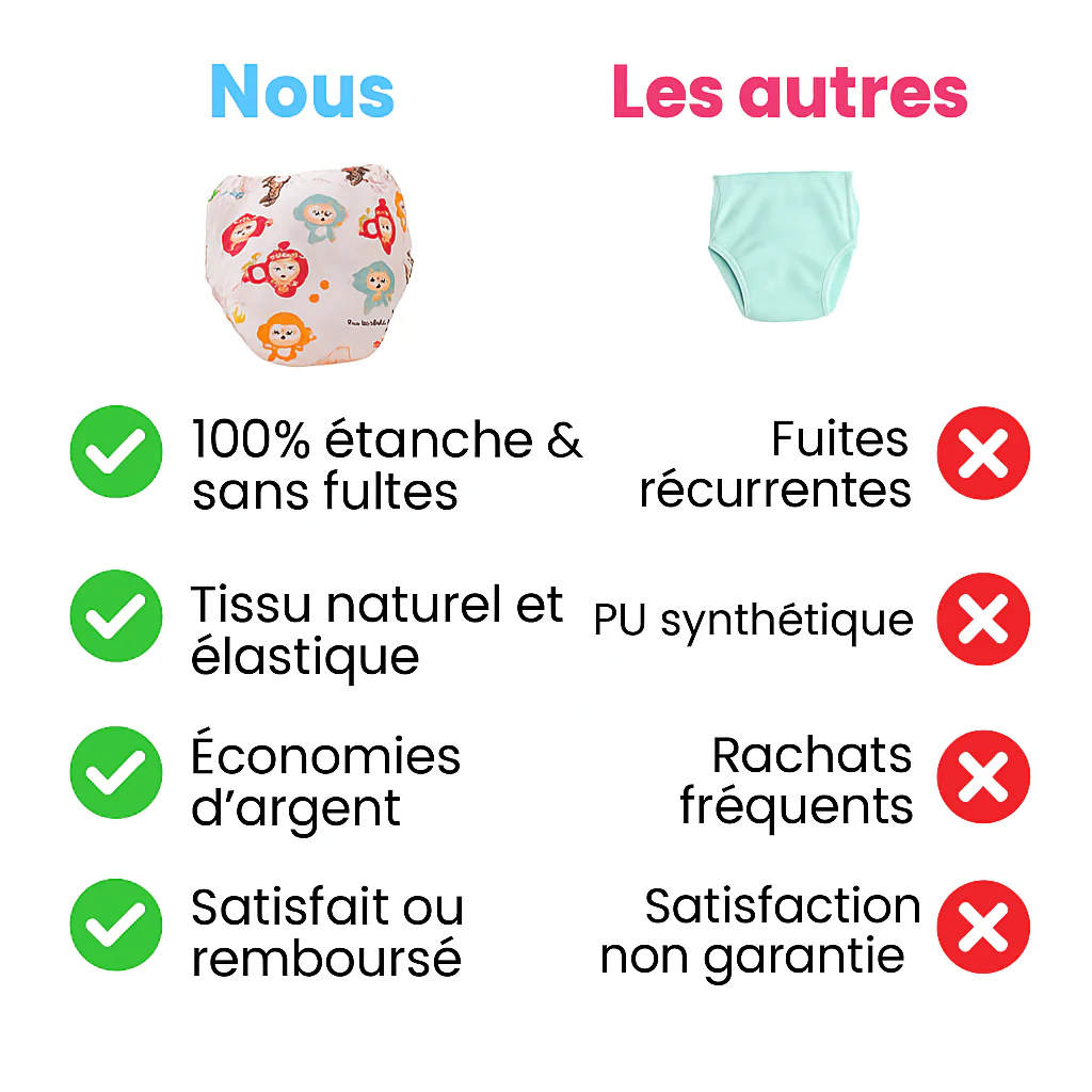 Avec nos culottes d’apprentissage, vous accompagnez votre enfant dans une étape clé de son développement, avec bienveillance et efficacité. Moins de stress, plus de liberté, et un quotidien plus léger pour toute la famille.