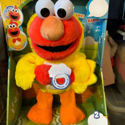 Découvrez Elmo comme vous ne l’avez jamais vu : en costume de poulet ! Avec sa fourrure douce et ses couleurs vives, Il est idéal pour égayer les moments de jeu et plonger les enfants dans l’univers amusant de leur personnage préféré.