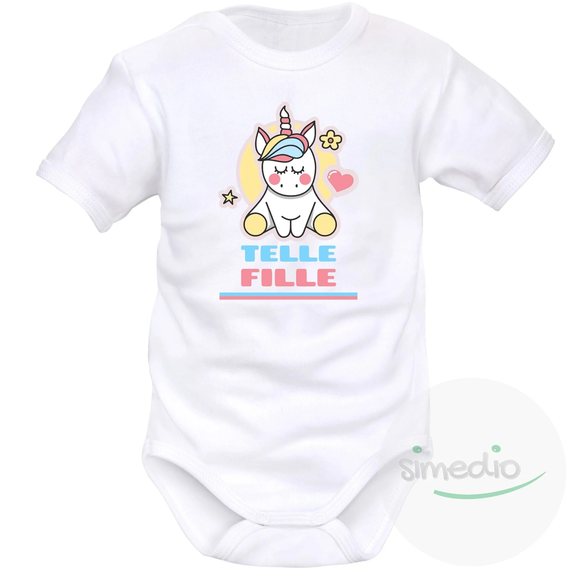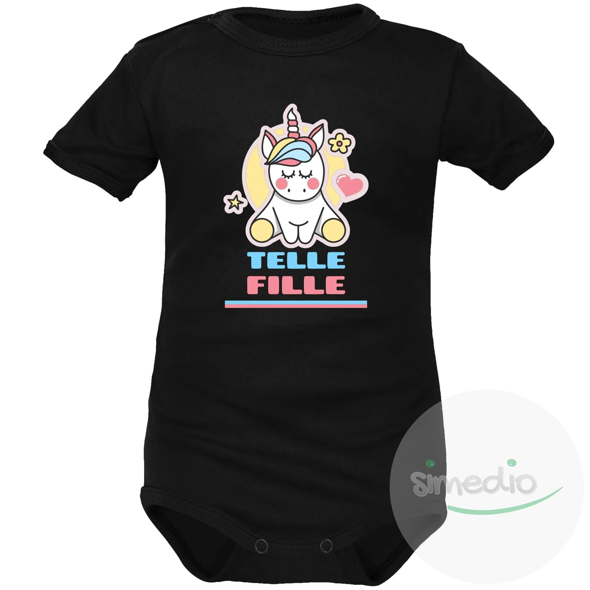Ensemble rigolo pour maman et bébé fille : telle mère… telle fille avec une jolie licorne sur un tee shirt pour une maman et sur un body bébé