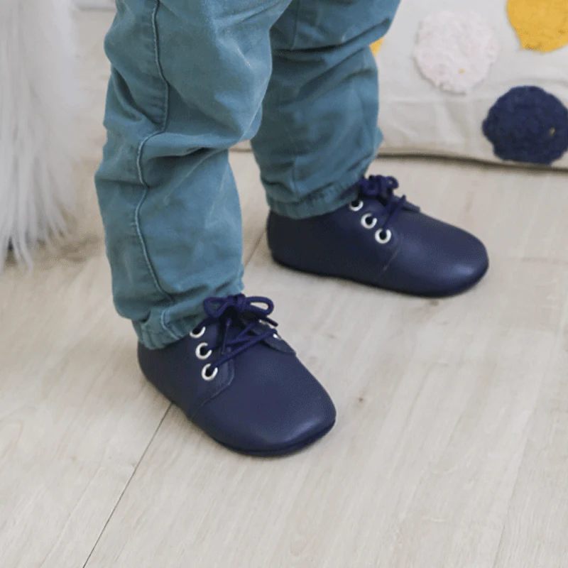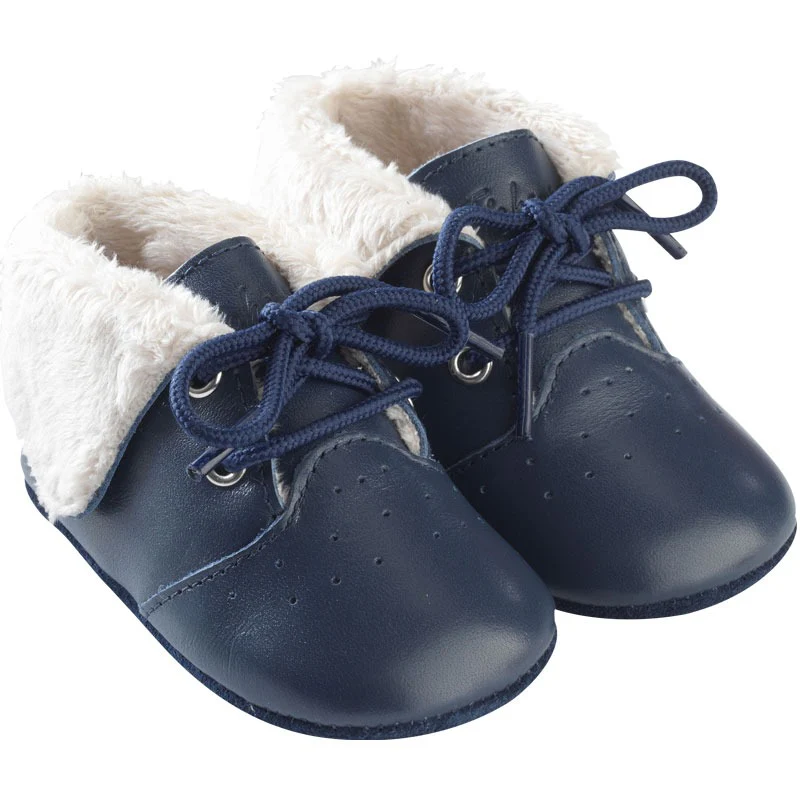 Chaussures bébé cuir souple adaptés pour l’intérieur et en extérieur par temps sec. Semelle extérieure en cuir suédé.