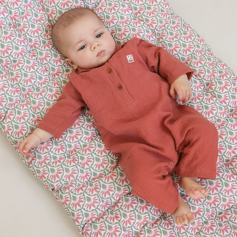 – Une grenouillère gaze de coton bébé confortable, ultra-douce et légère.