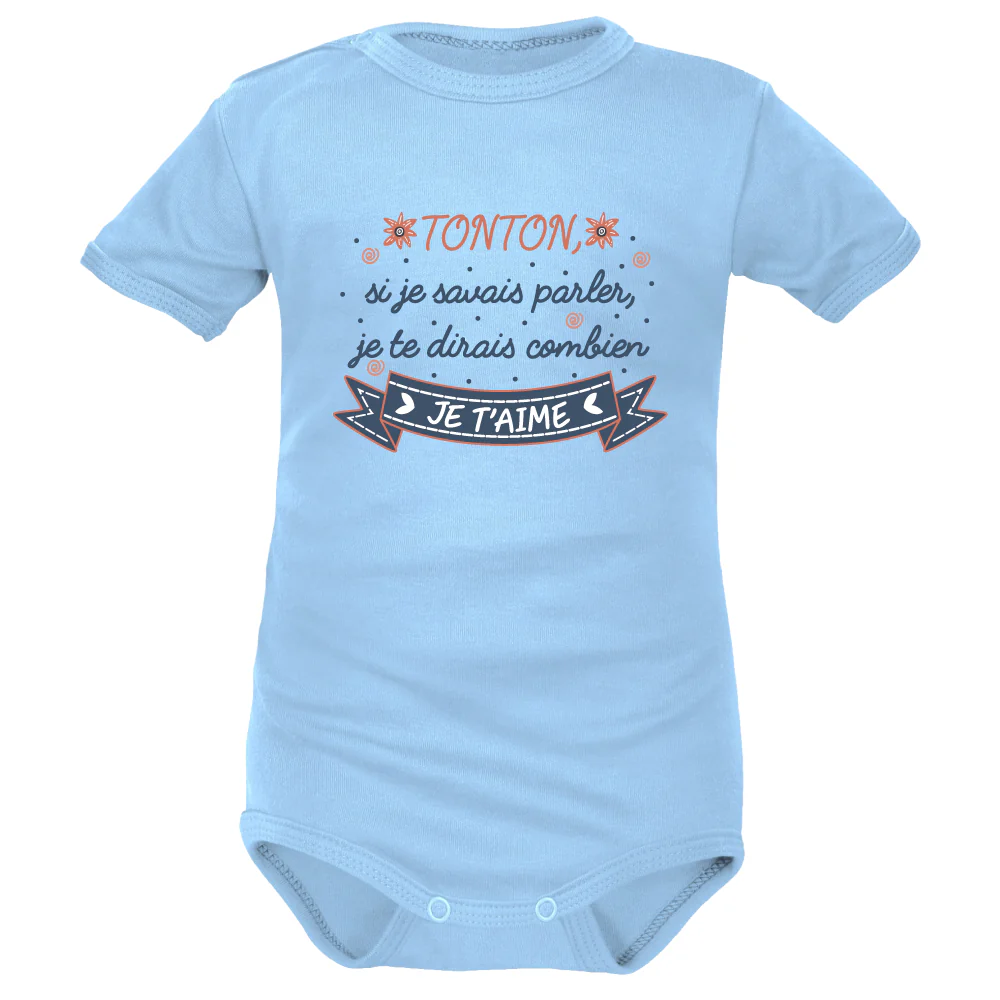 Un Body personnalisé c’est l’assurance de ne pas se tromper. À tous les coups, vous faites plaisir à Tonton, bébé ou ses parents. S’il y en a qui ne sont pas contents, les autres repartiront avec le vêtement. Si vous êtes Tonton, arrêtez d’être humble un instant. Vous avez le droit aussi de choyer vos neveux avec des Bodies Tonton.