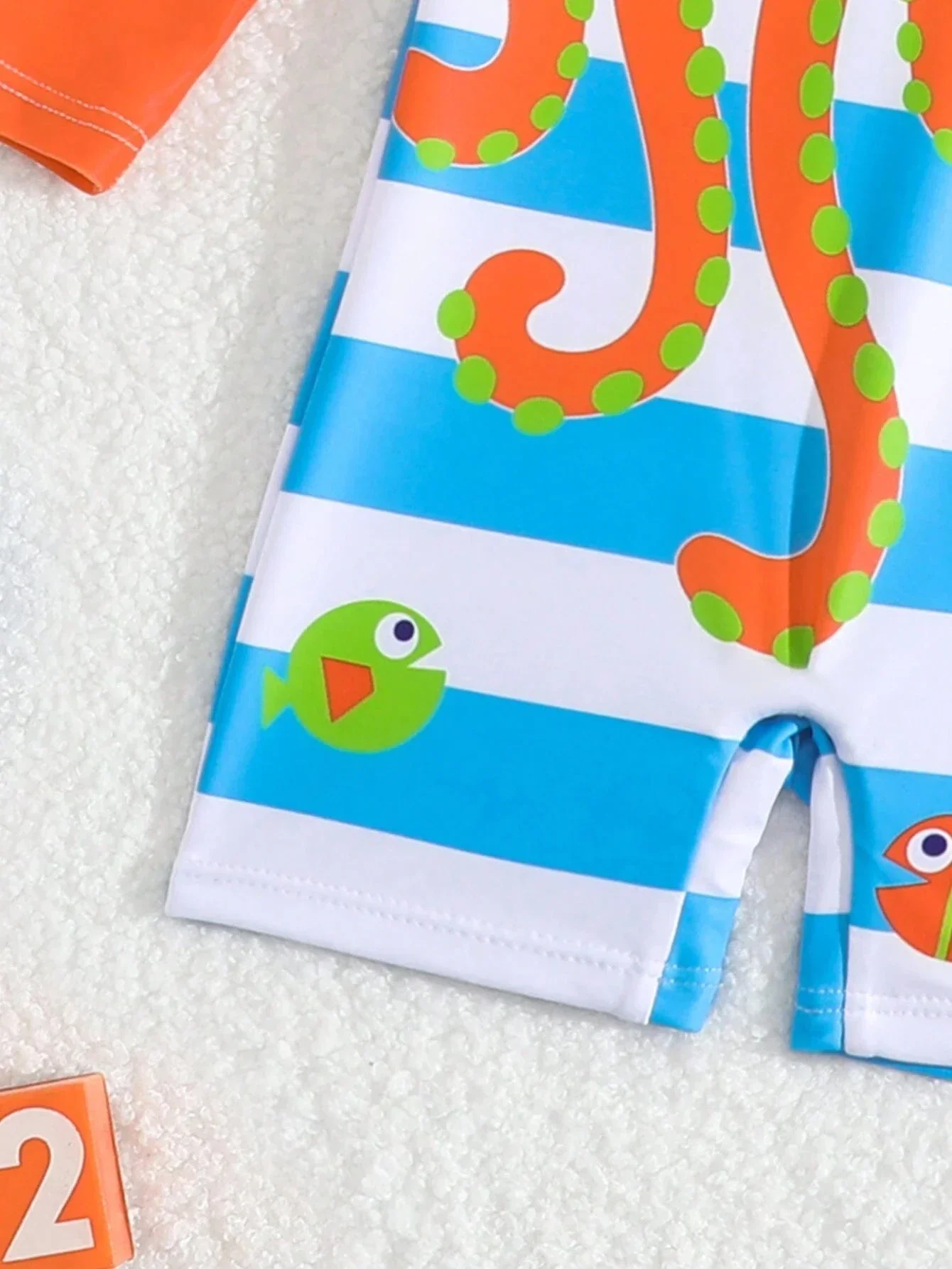 Transformez votre petit aventurier en star de la plage avec ce maillot de bain coloré et ultra confortable à manches longues.