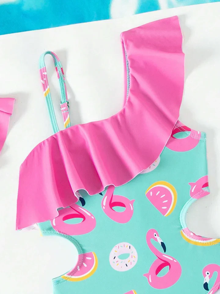 Ce maillot de bain à motif cartoon et coloré est parfait pour ajouter de la gaieté à ses journées au soleil. Avec des volants délicats, il se distingue par son design unique qui ravira votre petite, que ce soit à la plage ou à la piscine.
