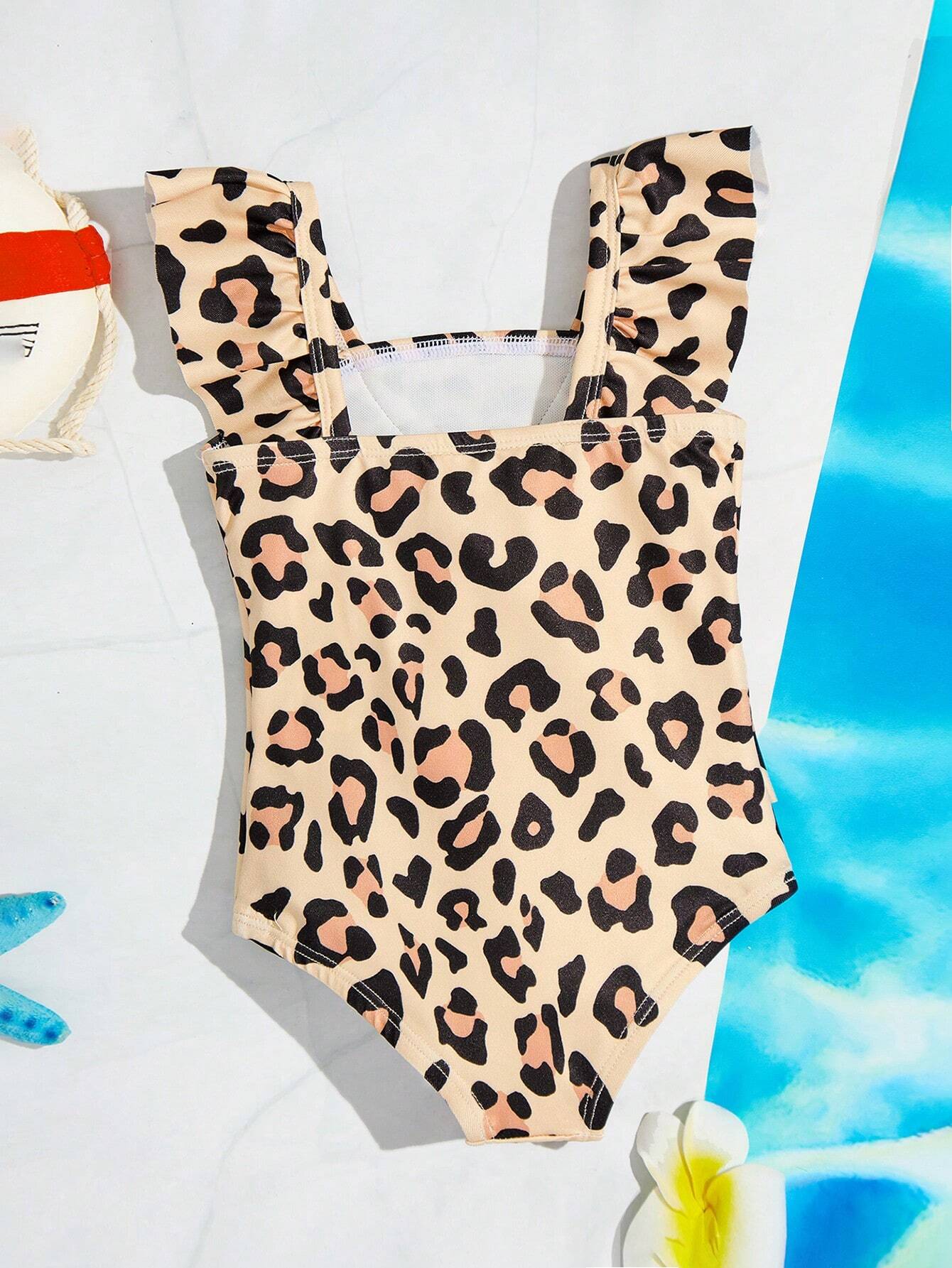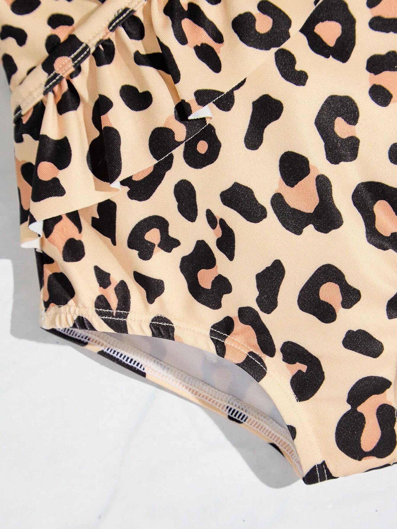 Maillot de Bain Une Pièce Léopard avec Volant pour Fille
