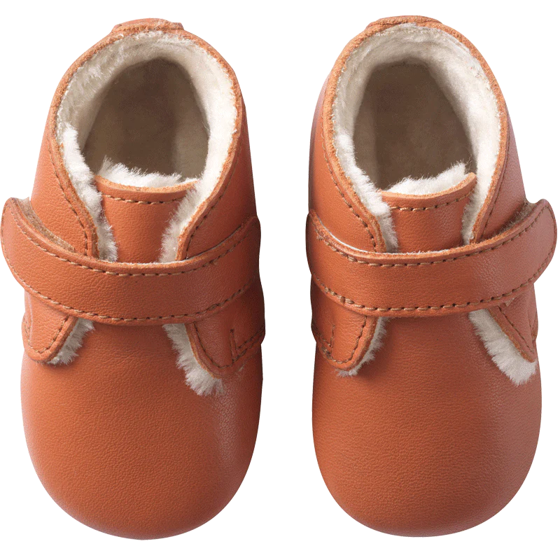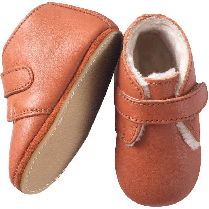 Chaussures bébé cuir souple fourrées adaptées pour l’intérieur et en extérieur par temps sec. Les chaussures bébés cuir souple Malou permettent un véritable effet pied-nu et donc un développement naturel des muscles du pied de votre bébé.