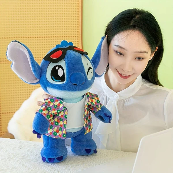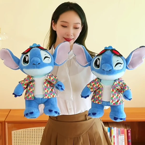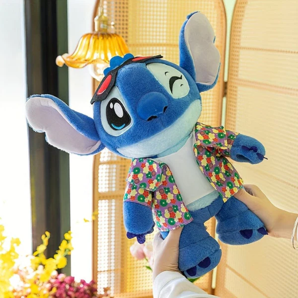Avec sa chemise fleurie et ses lunettes décoratives cousues, Stitchy Bleu se distingue par son style unique. Il décore joliment une chambre d’enfant et s’intègre aussi bien dans un univers kawaii que dans une ambiance plus classique.