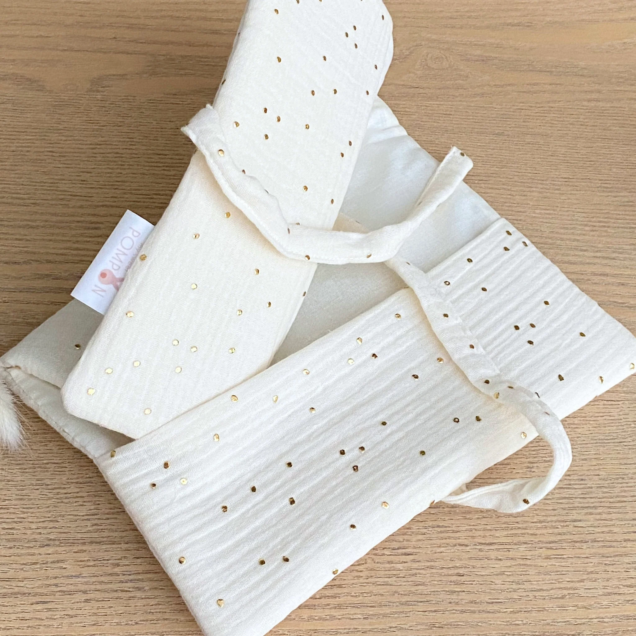 Intemporel et raffiné grâce à sa couleur unie et ses pois dorés, il accompagnera bébé à chaque étape avec douceur et délicatesse et traversera les années avec toujours la même élégance.