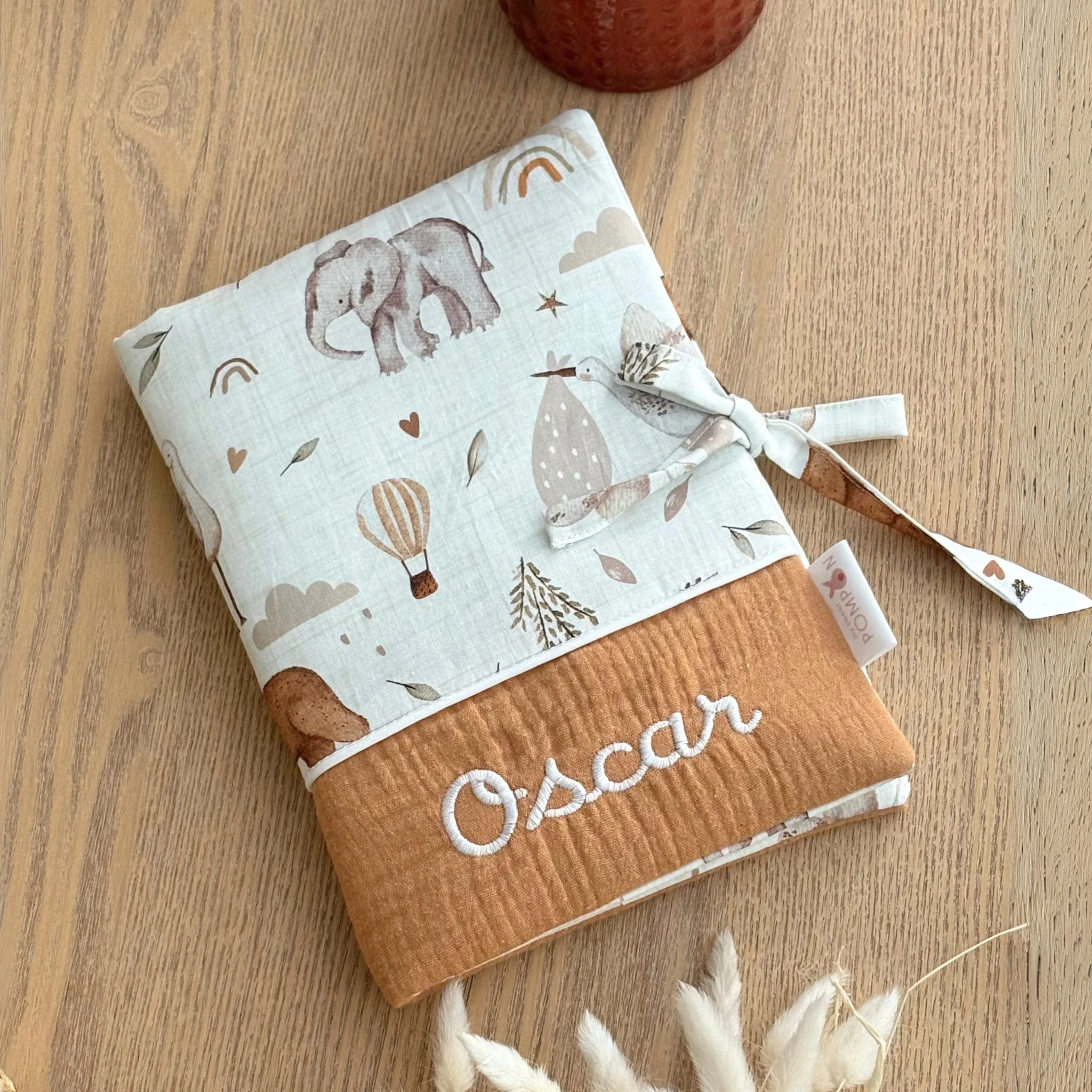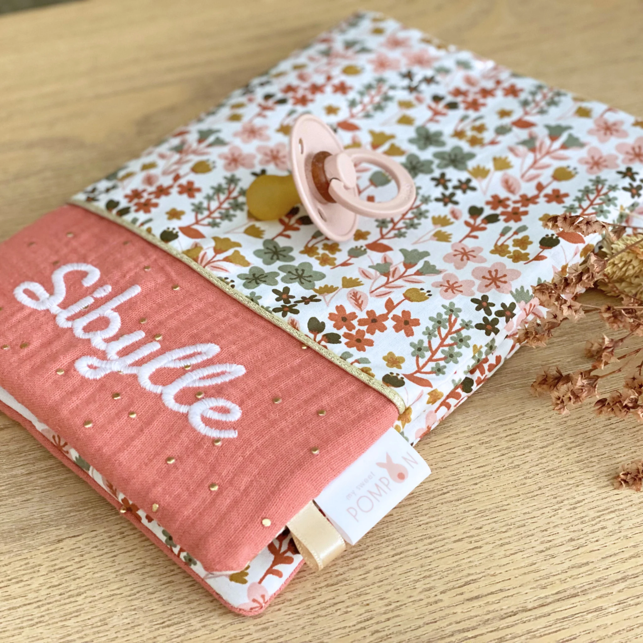 Protège carnet de santé personnalisé terracotta camel rose ou vert tilleul