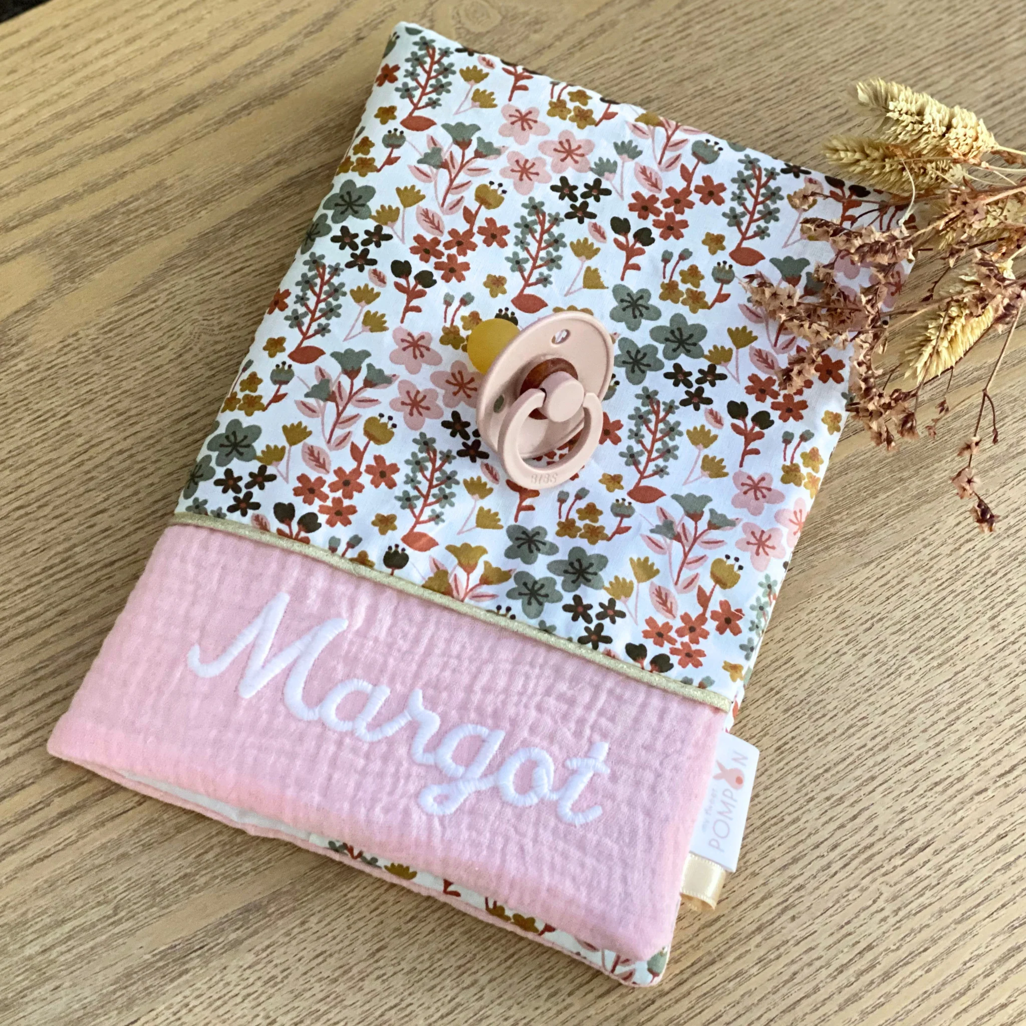 Le protège carnet de santé brodé à fleurs pour fille de la collection Louise avec personnalisation du prénom sera le cadeau de naissance le plus apprécié des parents et fera toujours son petit effet !