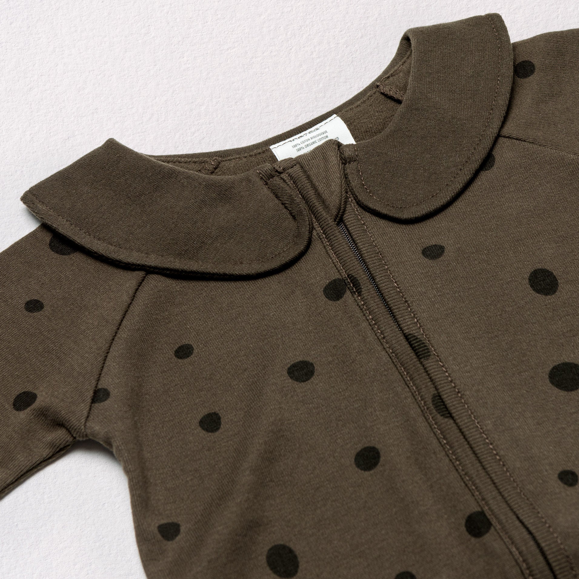 Un pyjama ingénieux et confortable grâce à son 100% coton biologique certifié GOTS tout doux ! Une valeur sure aussi en terme de style avec ses petits pois nébuleux et son col « Peter Pan » qui emmènera votre enfant aux pays des rêves.