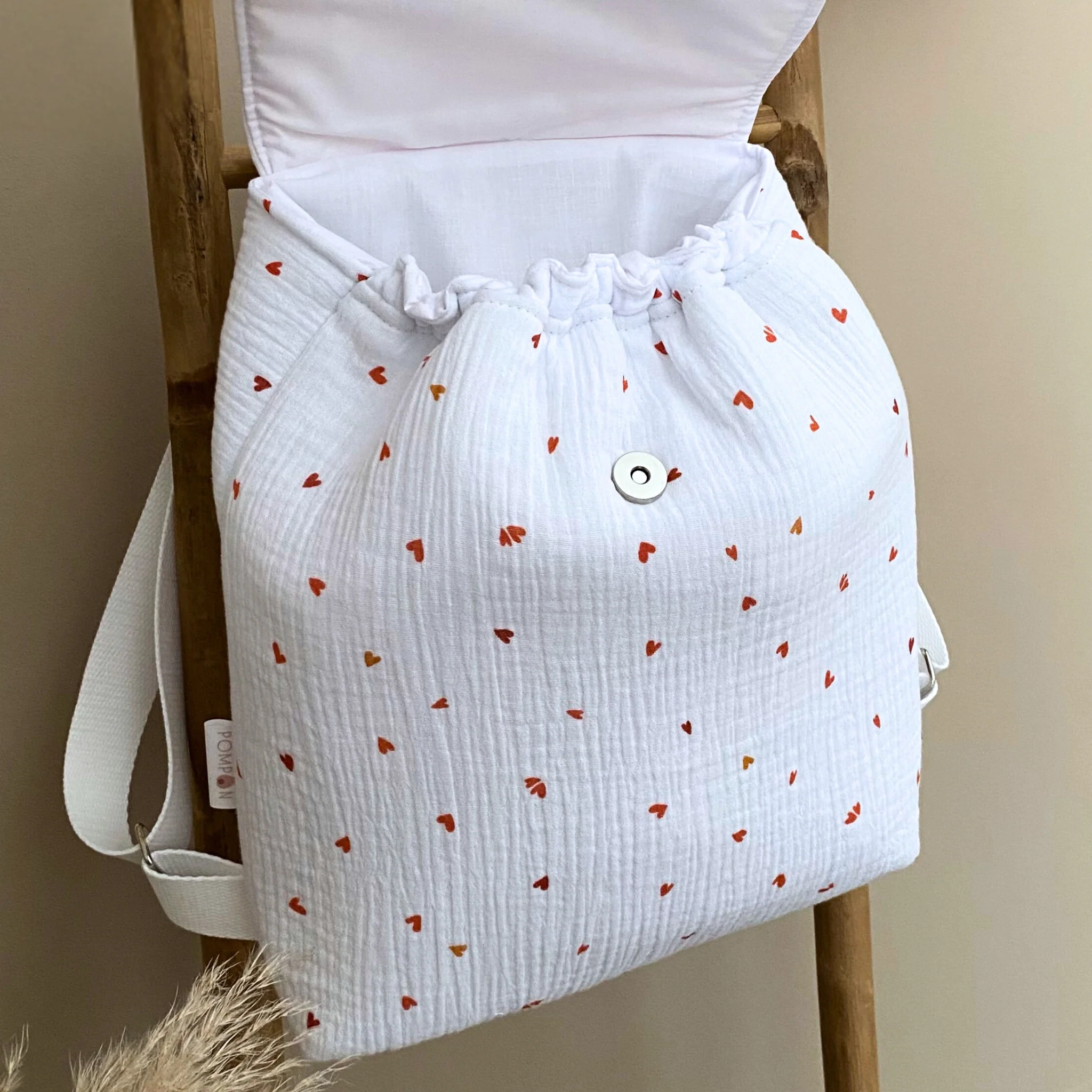 Sac à dos enfant personnalisé en gaze de coton coeurs rouge