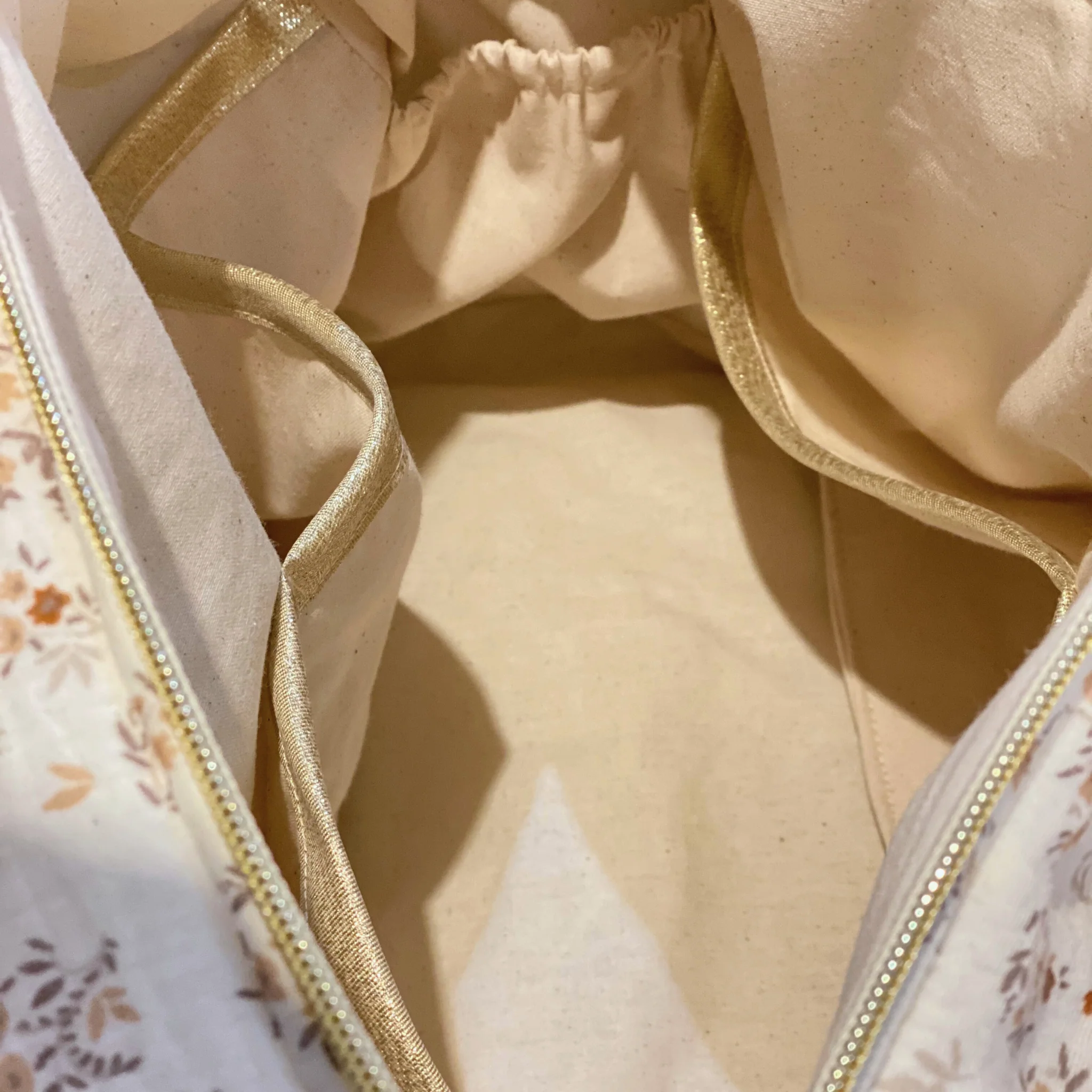 Intérieur en coton écru uni avec double poches sur chaque face et finition dorée