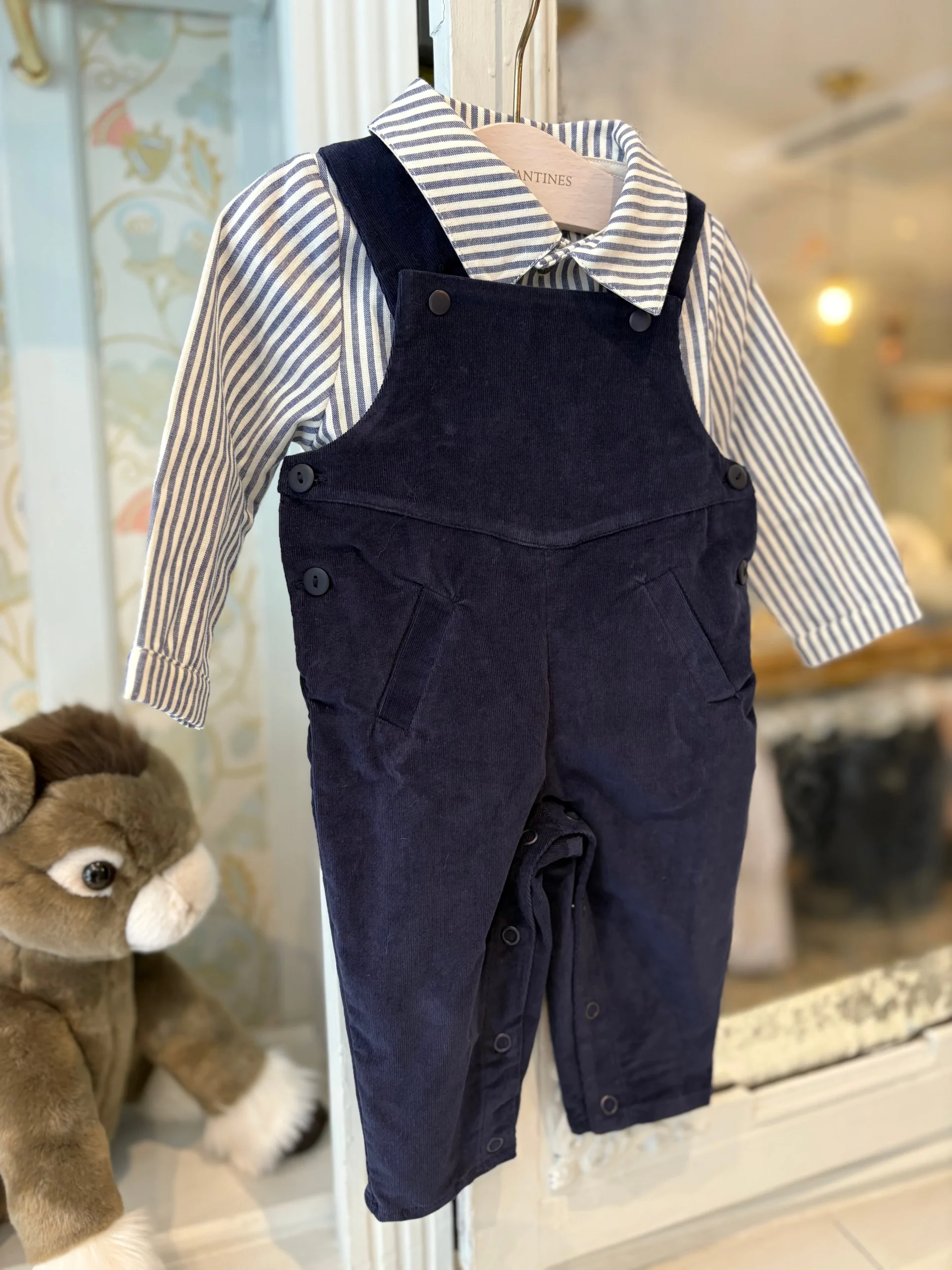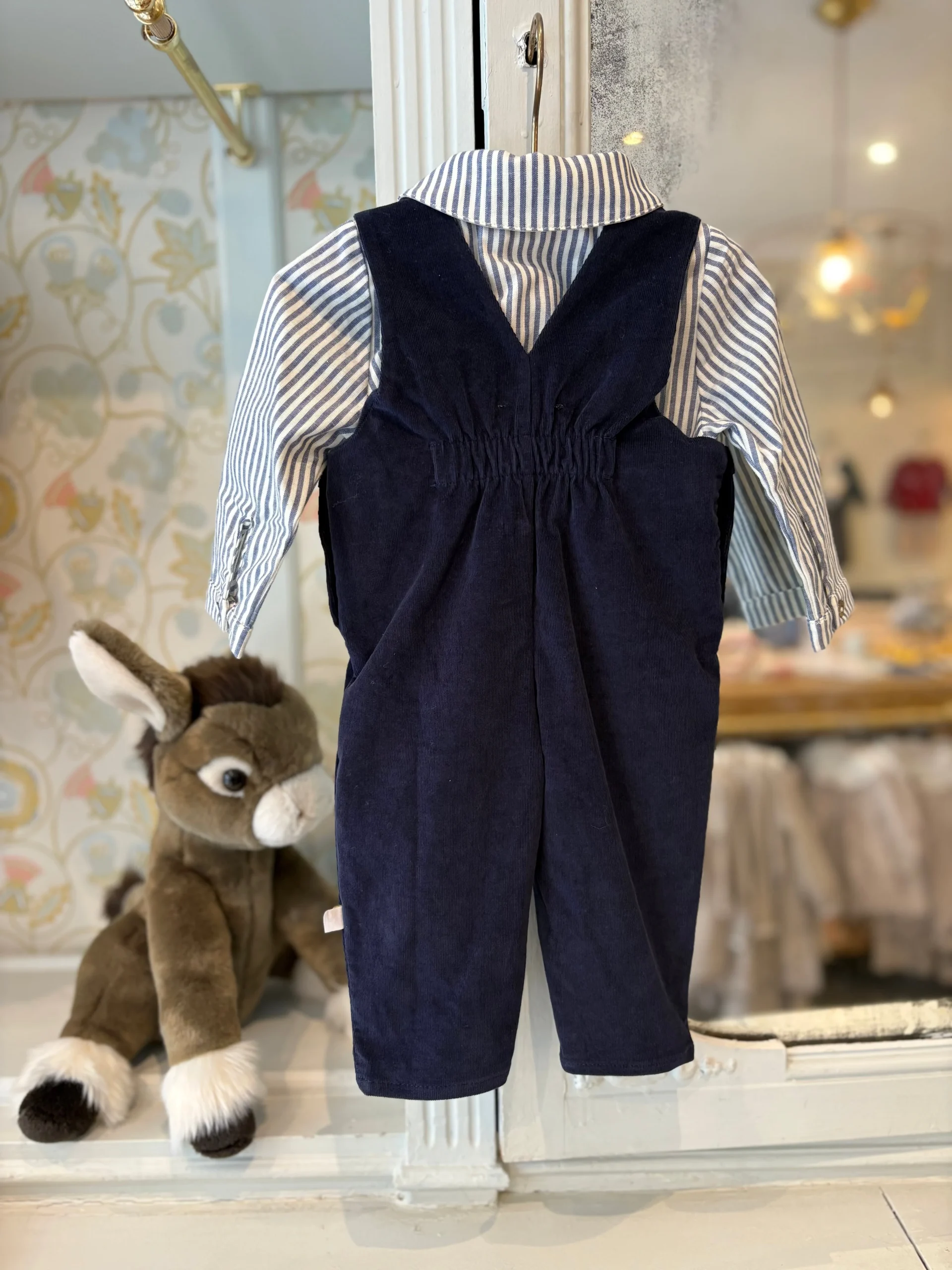 Cette salopette tout terrain séduit par son velours jean. Les bretelles sont réglables et accompagnent la croissance de votre enfant.
