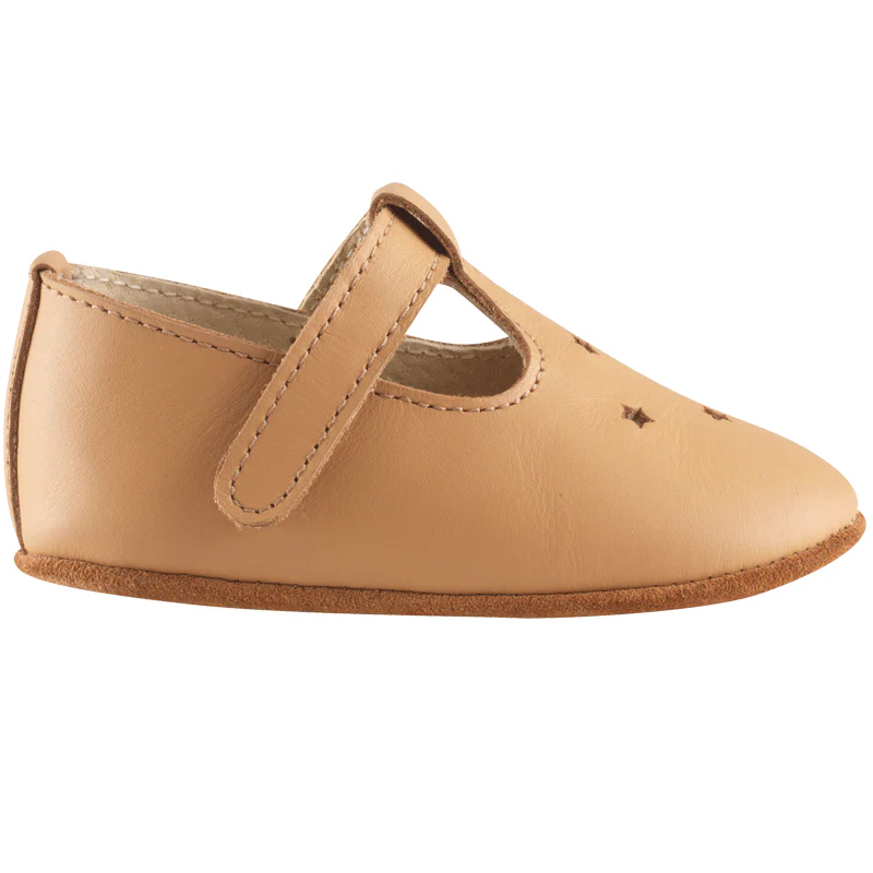 Chaussures bébé cuir souple fabriquées au Portugal adaptées pour l’intérieur et en extérieur. Semelle extérieure en cuir suédé.