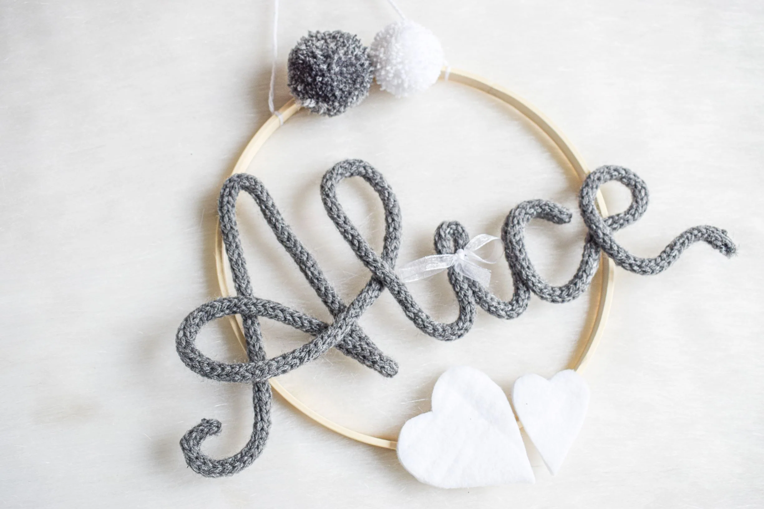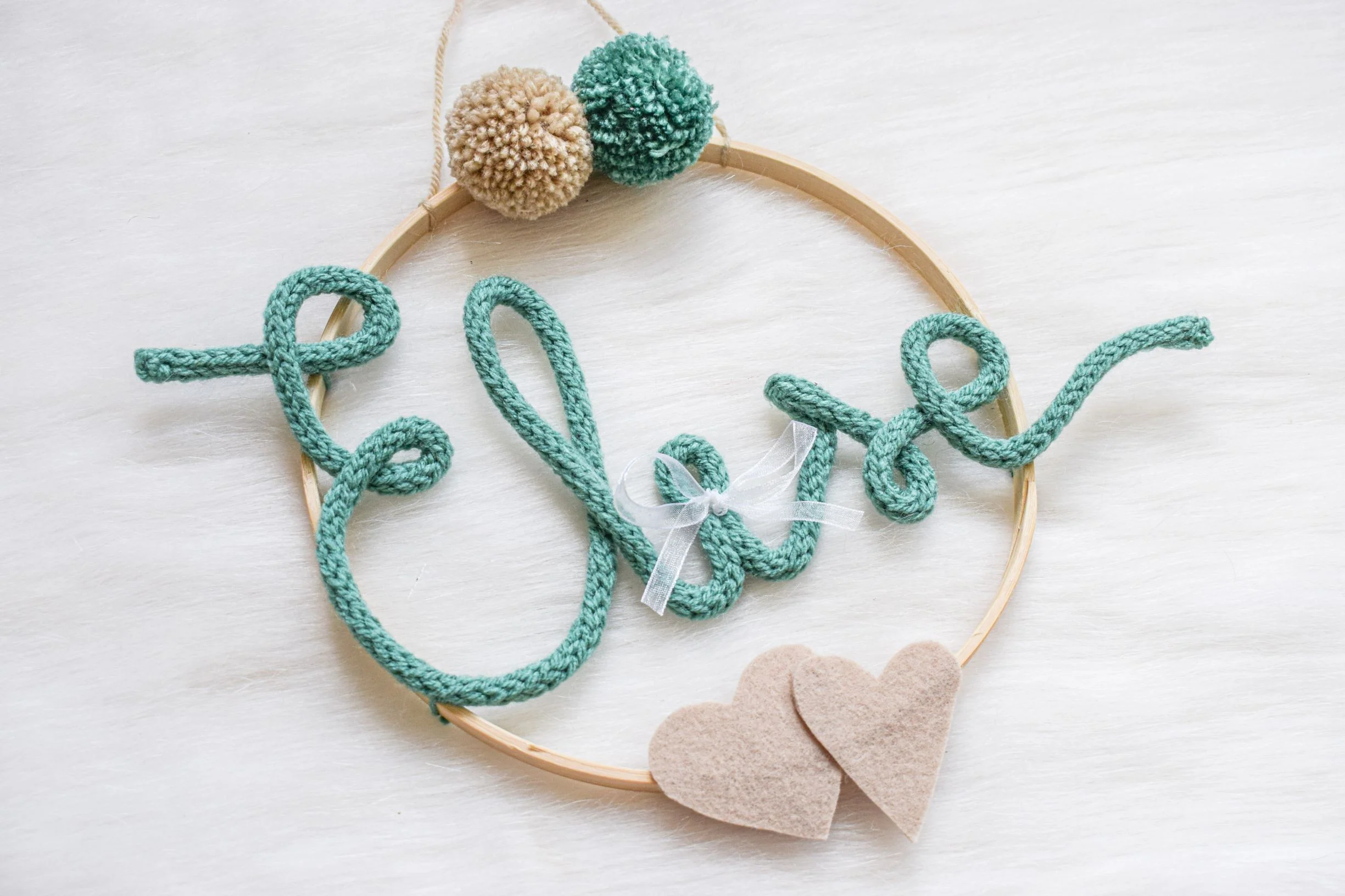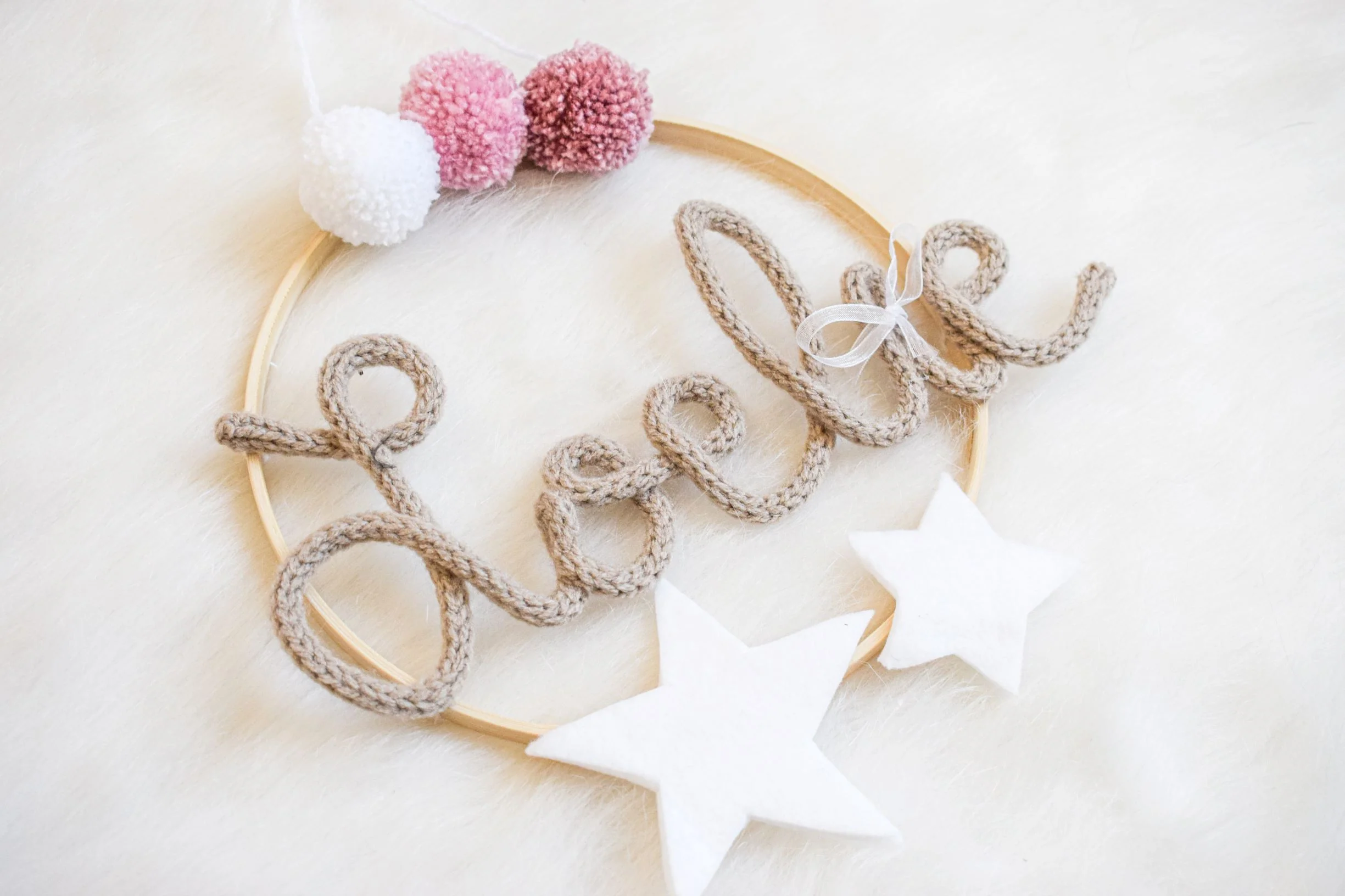 Cette suspension murale est en bois non traité, vous pouvez y ajouter le prénom souhaité et sélectionner les couleurs.