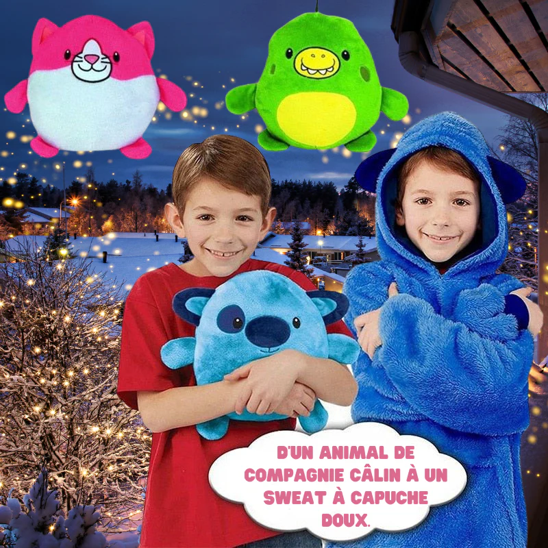 Le Hoodie Convertible Peluche est plus qu’un simple sweat à capuche – c’est un compagnon doux et amusant que vos enfants adoreront.
