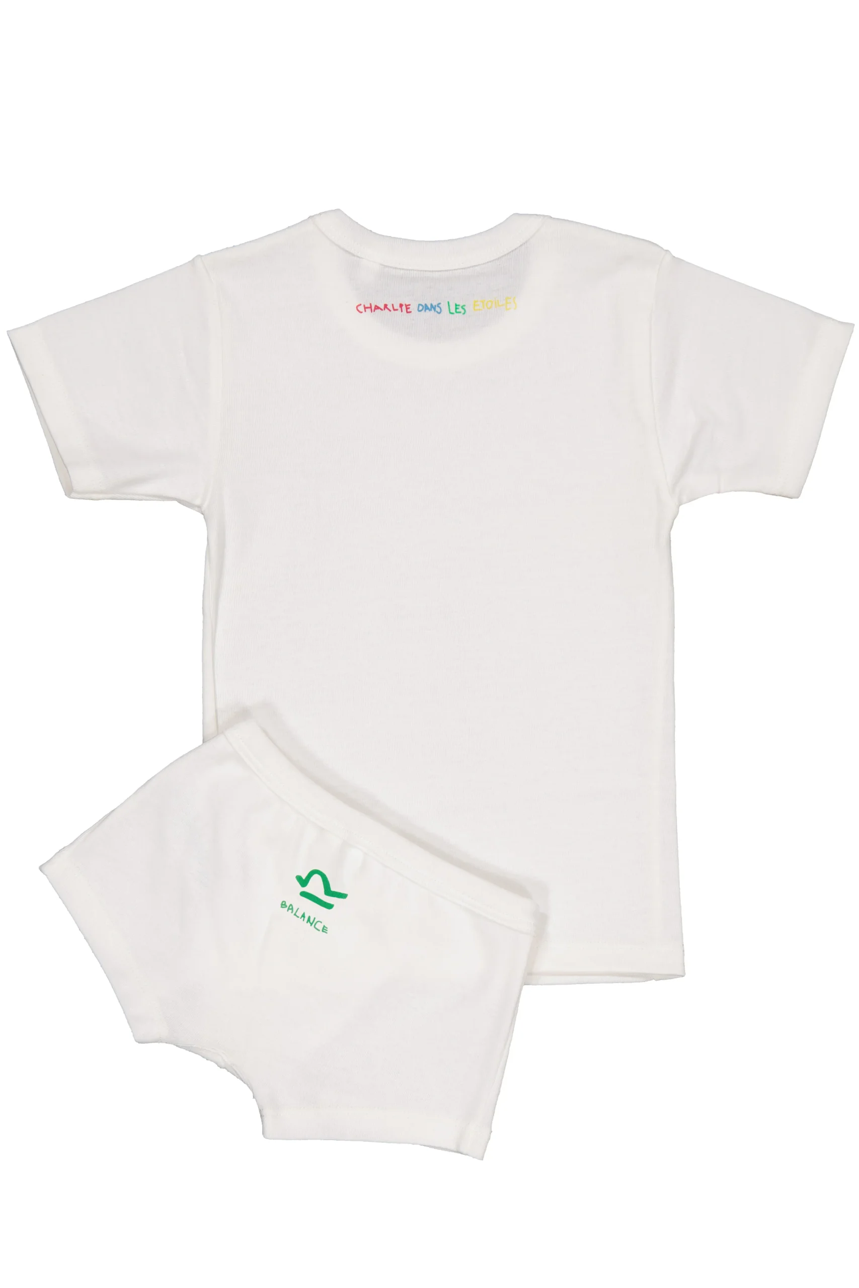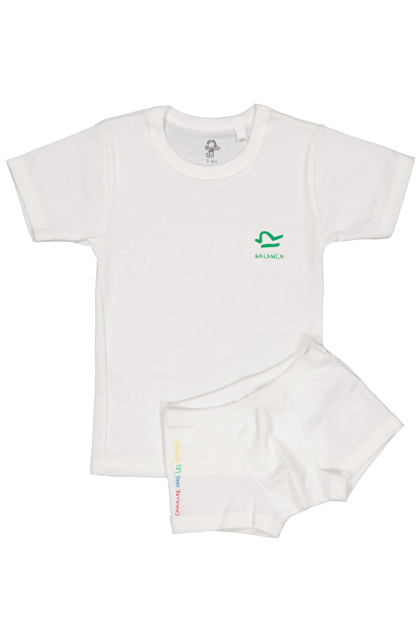 Imaginé par Charlie dans les étoiles, cet ensemble enfant composé d’un T-shirt manches courtes et d’un boxer assorti en coton bio certifié Oeko-Tex, accompagne les enfants de 2 à 6 ans dans leur quotidien, avec confort et liberté de mouvement.